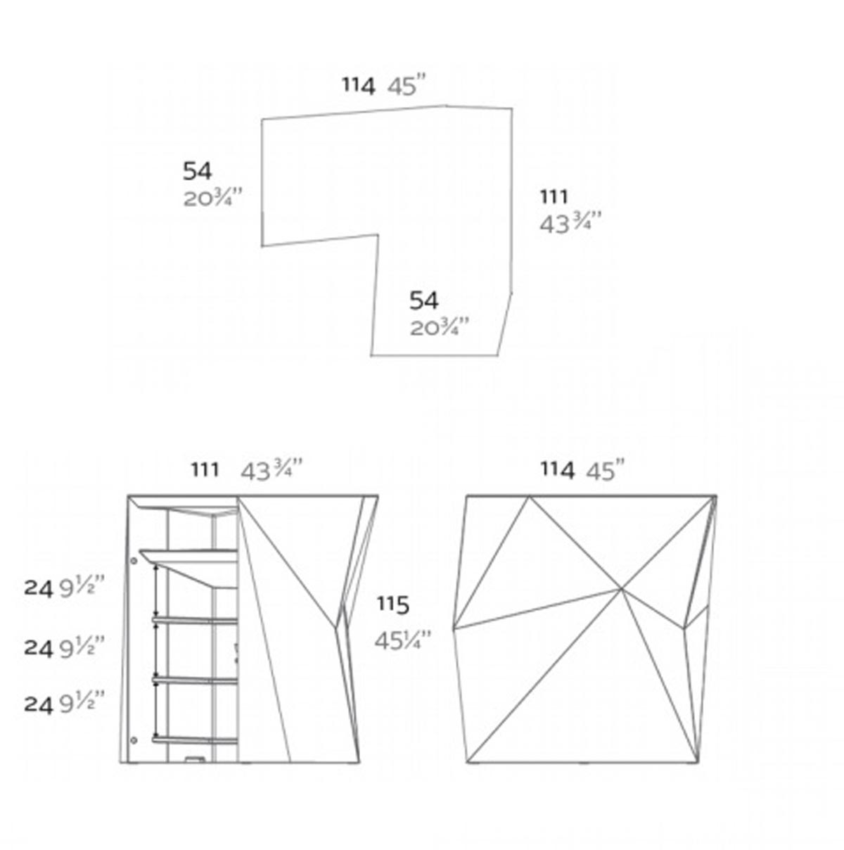 Faz Bancone bar angolare LED è il bancone bar luminoso per il tuo giardino. Realizzato in resina polietilenica è proposto qui in variante luminosa per accendere di magia le tue notti d'estate! Dotato di 3 vani porta oggetti nel retro banco lato operatore, è leggero, smart e versatile da comporre per realizzare postazioni di lavoro degne di un drink lover. MATERIALI