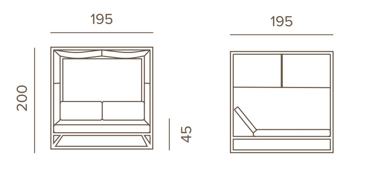 Antigua Daybed Grattoni è il daybed da giardino di design due posti con struttura in alluminio verniciato, materasso in ecopelle nautica, idrorepellente. Schienale reclinabile in 5 posizioni e tenda regolabile.