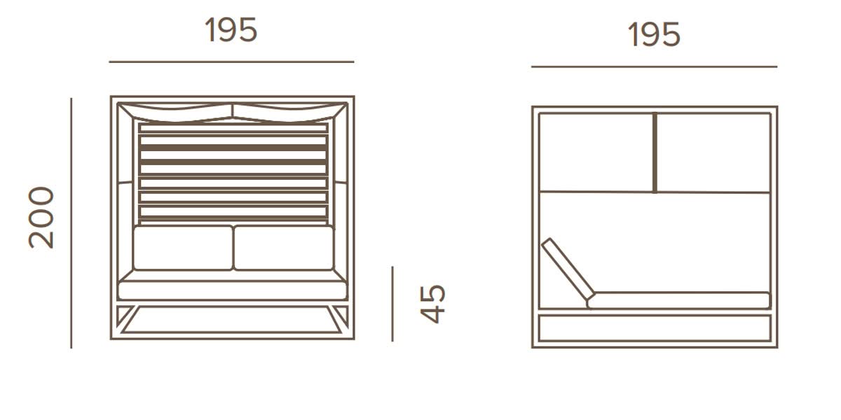 Antigua Lux Daybed Grattoni è il daybed da giardino di design due posti con struttura in alluminio verniciato, materasso in ecopelle nautica, idrorepellente. Schienale reclinabile in 5 posizioni e tenda regolabile.