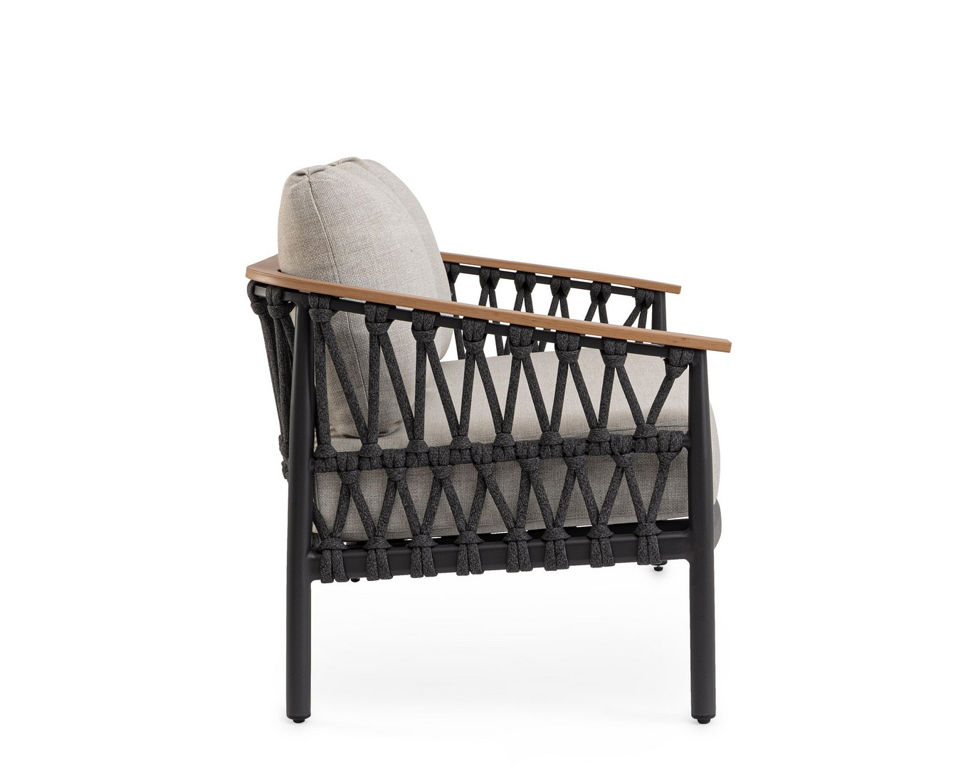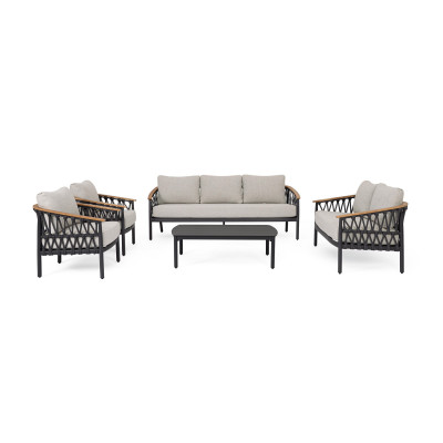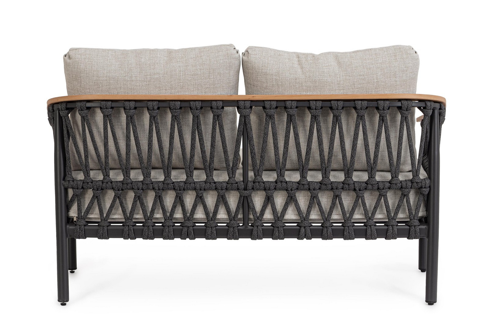 Divano 2 posti Fenix Antracite di Bizzotto è il divano da giardino in alluminio verniciato a polvere (poliestere). Braccioli in alluminio con verniciatura effetto legno ed intreccio con corde in tessuto olefin (100% polipropilene). Cuscini seduta e schienale sfoderabili con tessuto idrorepellente olefin (100% polipropilene). Piedini regolabili.