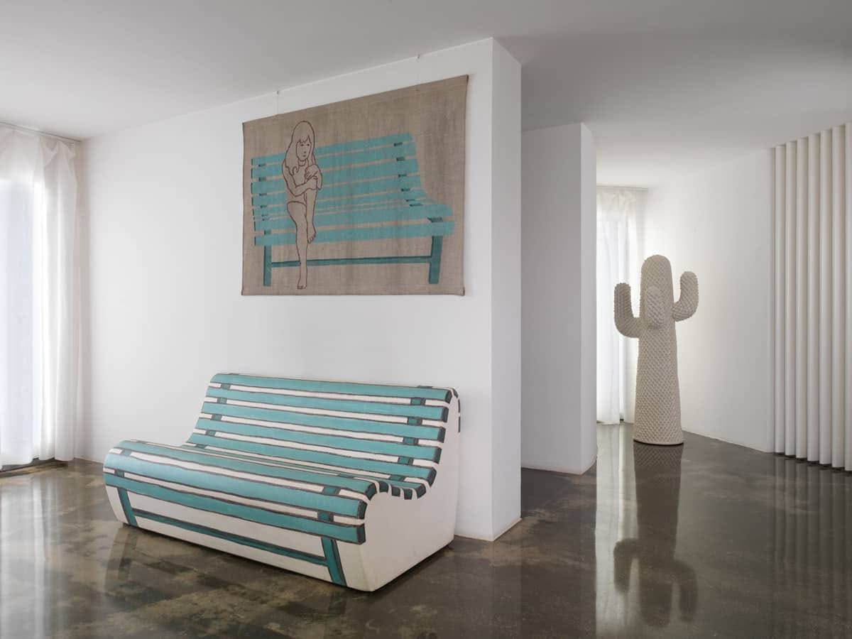 Gufram Summertime Divano è un divano di design del tempo libero in ogni stagione. SUMMERTIME e AUTUMNTIME, realizzati dall’artista Valerio Berruti, emulano i suoi soggetti pittorici con un nuovo significato. Abbastanza spaziosi da ospitare fino a tre persone, questi divani – dipinti a mano e unici nel loro genere – hanno cifra stilistica di Berruti. I colori sono quelli dell’estate e dell’autunno: SUMMERTIME è disponibile nelle tonalità pittoriche dell’acquamarina, mentre AUTUMNTIME evoca le foglie autunnali con le calde tonalità del miele. SUMMERTIME e AUTUMNTIME di Valerio Berruti si ispirano ai suoi dipinti che ritraggono la piccola e sfuggente bellezza della vita quotidiana. I due divani gemelli dipinti a mano si ispirano al caldo dell’estate e alla fresca brezza autunnale. Abbastanza spaziosi da ospitare tre persone, questi divani evocano le rispettive stagioni anche nella scelta dei colori: con SUMMERTIME nei toni dell’acquamarina e AUTUMNTIME nei caldi toni del miele. La magia del design di Berruti sta nella reinterpretazione, capace di trasformare l’immagine originale di una panchina italiana del dopoguerra in un divano spazioso e confortevole, rifinito con il caratteristico rivestimento Guflac® Plus di Gufram. La versatilità della panchina permette a questi divani di inserirsi perfettamente in un salotto di famiglia o in un giardino tra fiori e alberi, sfumando il confine tra arte e design. Il confine sfumato tra arte e design, concretizzato dai divani, è sotteso anche nel titolo del progetto. Prendendo ispirazione dalla celebre canzone di Gershwin, “Summertime” il nome evoca immediatamente queste parole: “…and the living is easy”. E, infatti, con la bellezza serena di SUMMERTIME e AUTUMNTIME, vivere diventa un’esperienza piacevole.