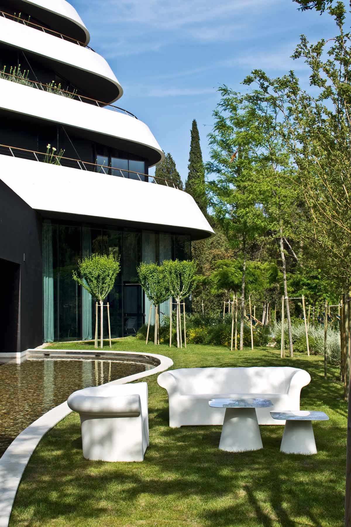 Sirchester Divano by Serralunga Outdoor Design è la divano da giardino ispirato all'originale poltrona inglese nota per il suo effetto imbottito. Sirchester, una linea senza tempo che appartiene alla storia del design, è stata oggi reinterpretata utilizzando la nuova filosofia dell'azienda italiana Serralunga. Dietro la creazione degli arredi di lusso Sirchester ci sono due designer italiani: Matteo Bazzicalupo e Raffaella Mangiarotti. Il concept iniziale era molto chiaro: quello di creare divani da esterno comodi e funzionali. La sinergia tra design e forma è stata resa possibile grazie al know-how dell'azienda Serralunga che, attraverso la tecnologia rotazionale, ha creato una forma evocativa in grado di conservare le caratteristiche speciali, come l'effetto imbottito, dell'originale poltrona inglese. Serralunga, insieme ai designer Mangiarotti e Bazzicalupo, ha fatto un ulteriore sforzo, accendendo la creatività emozionale per creare questo articolo di arredamento per l'ospitalità. Infatti, Sirchester è una grande collezione per creare atmosfere divertenti in camere e strutture per il tempo libero. Con questa collezione di poltrona e divano, Serralunga e i designer sono riusciti a creare un prodotto funzionale per l'uso all'aperto. Questa versione è disponibile anche in versione luminosa e in finitura Moleskin, design registrato, aggiungendo fascino e calore al prodotto finale.
