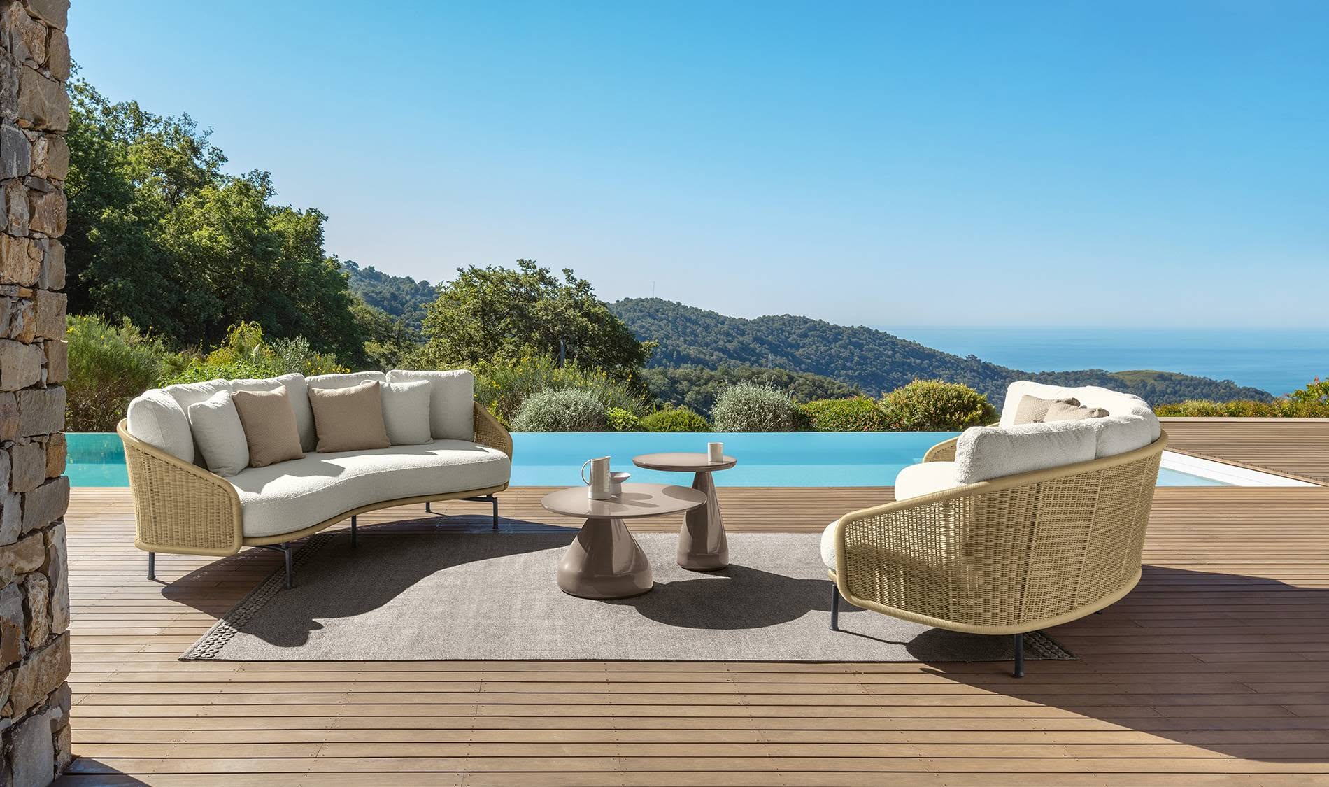 Forme semplici ma caratterizzate da schienali avvolgenti intrecciati in stile midollino che conferiscono a Nido delle forme morbide e arrotondate. Una collezione dello studio Palomba-Serafini completa di elementi che vanno dai sofa, alle sedute fino a giungere ai confortevoli sunbed e daybed. L’idea è quella di un oggetto concluso, semplice, ma che abbia una sua versatilità: Le cuscinature informali e gli schienali che le abbracciano, trasformandosi gradualmente in braccioli, sono frutto di un design ispirato al concetto del nido, un’alcova come luogo in cui godere del proprio tempo in relax e trovare protezione come in una culla. L’opulenza della natura e gli scorci pieni di fascino dei paesaggi mediterranei sono le ispirazioni che hanno dato origine alle collezioni del catalogo Premium. Una selezione di arredi per la vita outdoor che fanno della qualità e dell’eleganza le loro parole chiave. Raccontano momenti di benessere legati alla dolce vita italiana con eleganza e raffinatezza. Il design eccellente dei prodotti proposti è espresso nella ricercatezza delle finiture, nella scelta di cromatismi caldi e materici, nell’esperienza manifatturiera che crea prodotti resistenti e sempre ricchi di fascino. Divani e sedute destinati al relax, tavoli e sedie che scaldano e rendono piacevoli le zone dining: le collezioni del catalogo Premium reinterpretano il concetto di vita all’aperto, trasformando gli ambienti in conviviali oasi di pace.