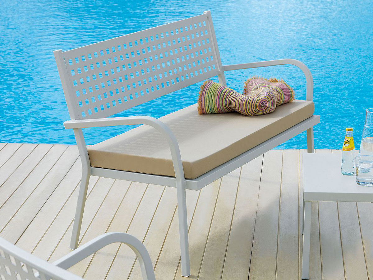 Alice Divano CH630 by Vermobil è il divano da giardino made in Italy, realizzato in metallo con verniciatura effettuata a polveri termoindurenti a base di poliestere Qualicoat classe 1 e classe 2. Possibilità di trattamento aggiuntivo prima della finitura con applicazione di fondo epossidico. Struttura disponibile in finiture cromatiche standard e speciali e possibilità di abbinare un cuscino seduta in tessuto specifico per l'outdoor in differenti colorazioni. MATERIALI