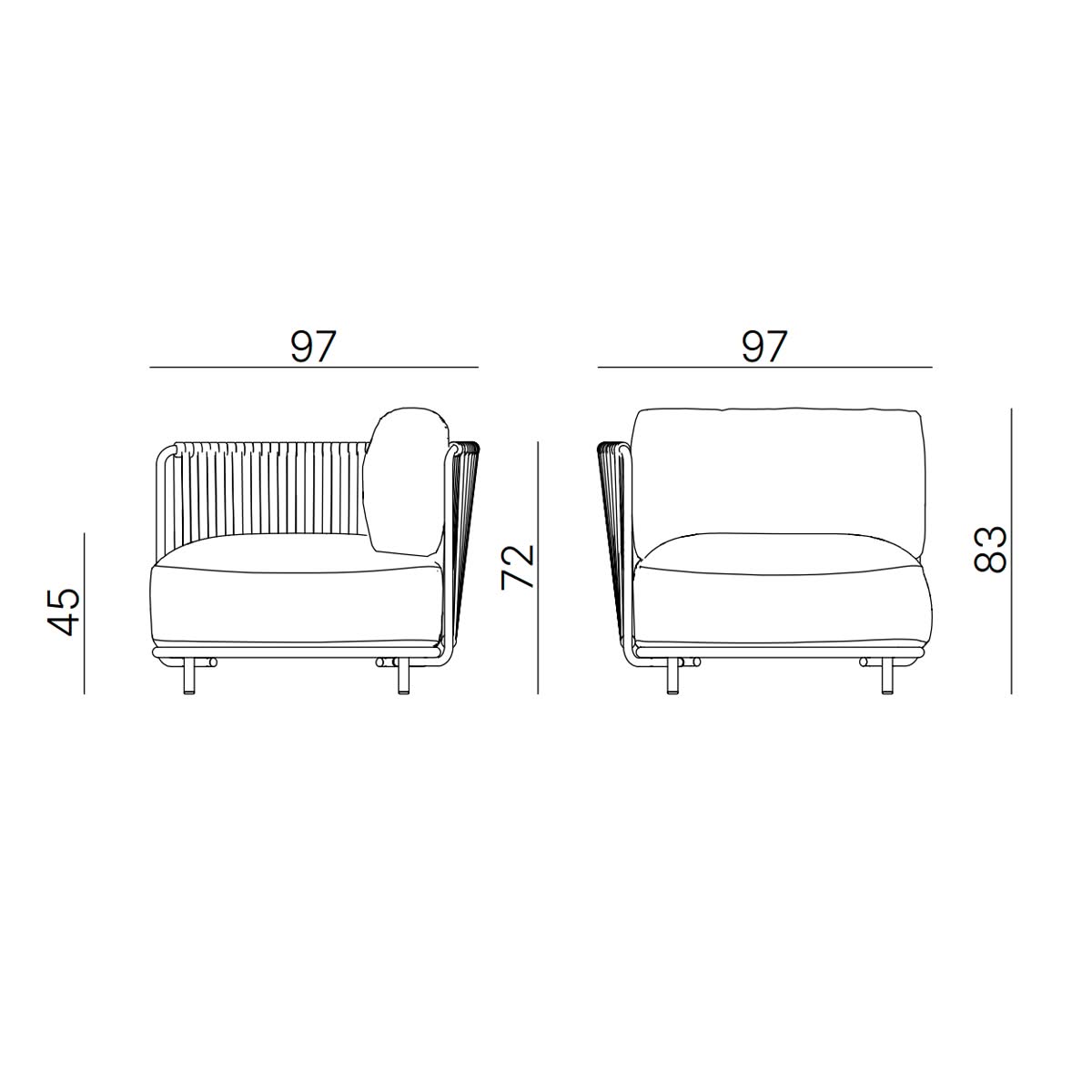 Nea Modulo angolare by Vermobil è la poltrona da giardino made in Italy con struttura in acciaio zincato e seduta e schienale in tessuto da esterno Business, Sunset o Avant-Garde opzionabili.
