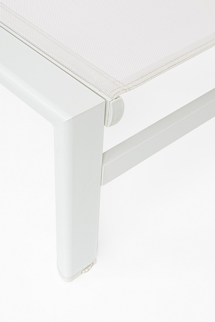 Lettino Skipper New con ruote Vapor di Bizzotto è il lettino di design con struttura in alluminio, verniciato a polvere (poliestere). Seduta e schienale rivestiti in textilene 2x1. Schienale reclinabile (4 posizioni). Viteria in acciaio inossidabile. Da assemblare.