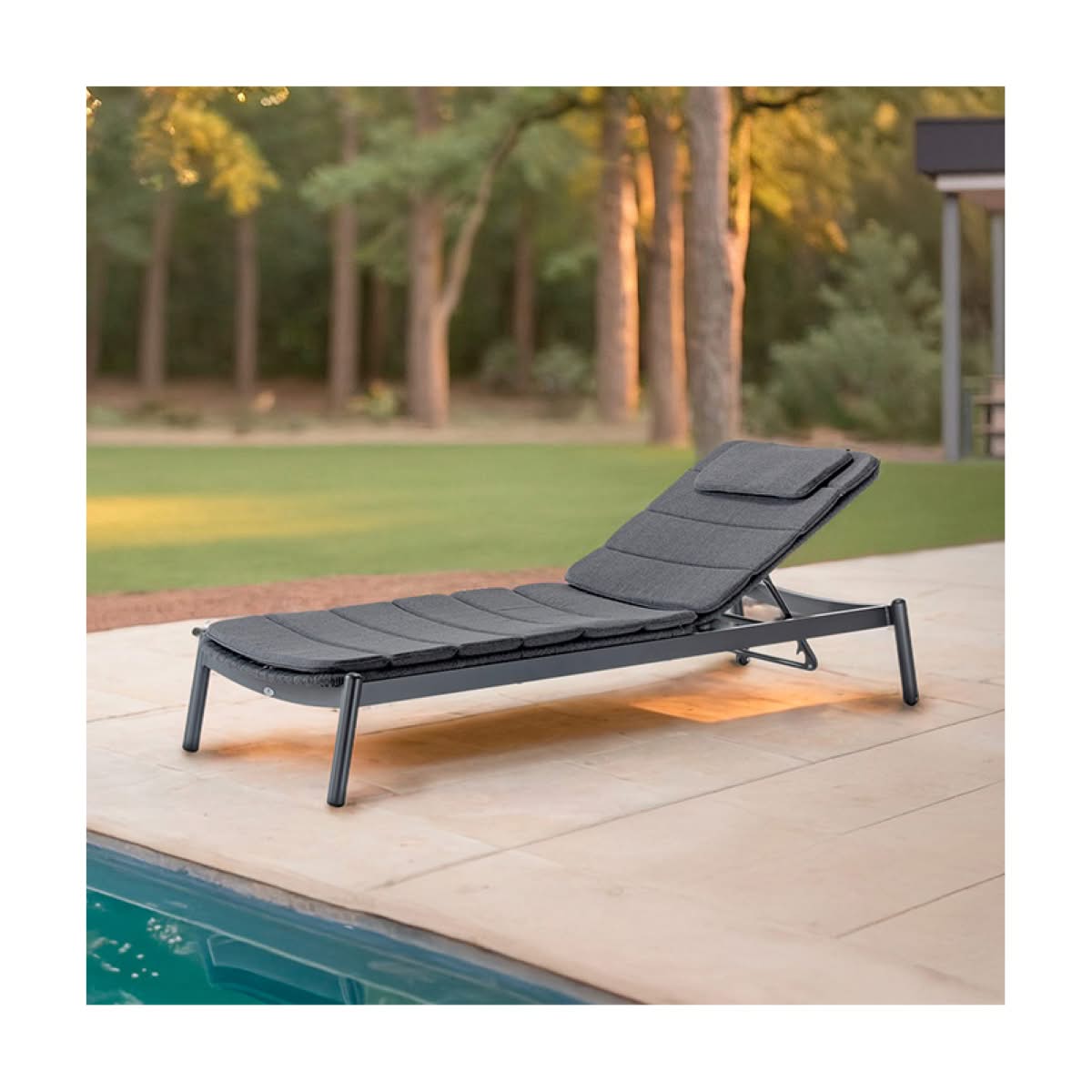 Atol Sunbed Grattoni è il lettino da giardino in alluminio con rivestimento in poliestere. Cuscineria in tessuto Olefin e gomma drenante QDF.