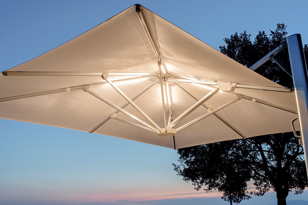 per tessuto acrilico si intende una fibra il cui elemento di base è una catena di polimeri composta all’85% da acrilonitrile. La fibra acrilica unisce alle qualità estetiche di un tessuto lussuoso, dalla corposità e dal touch assimilabili a quelli della lana, le qualità funzionali di resistenza agli agenti atmosferici: resiste ai raggi UV, non si macchia e non imputridisce all’acqua grazie alla velocità di asciugatura. Prima di chiudere l’ombrellone è importante assicurarsi che il telo sia perfettamente asciutto. Durante i mesi di non utilizzo l’ombrellone deve essere riposto in un ambiente asciutto e protetto dalla relativa cover.