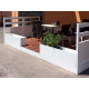 Basic Fioriera di Il Parco è il fioriera per paratie che agganciata ai moduli paravento e caricata al suo interno con vasi o sassi decorativi, permette di creare soluzioni autoportanti dove non è possibile tassellare a terra, consentendo anche lo spostamento con l’aggiunta di ruote dotate di stop.