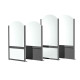 MODULO: telaio in tubolare di alluminio con profilo speciale ad una cava di sezione 45x45/sp.2mm; pannelli superiore con arco a sbalzo di 20 cm e inferiore a scelta tra vetro temperato sp.5 mm, vetro stratificato sp.3+3 mm o alluminio sp.2 mm. VERNICIATURA STANDARD: colore antracite effetto micaceo o bianco RAL 9010.