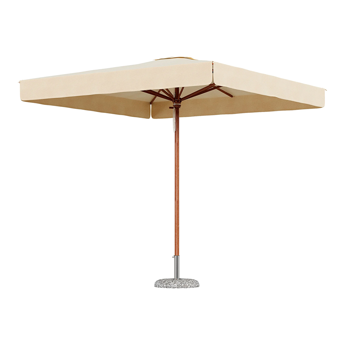 Dolomiti Legno Tinta Iroko ombrellone a palo centrale 400x400 di Ombrellificio Veneto è un ombrellone a palo centrale in legno con telaio in pregiato legno duro verniciato – completo soffietto antivento – apertura a doppia carrucola – base venduta come accessorio. Il peso della base deve essere proporzionato al peso dell’ombrellone. Se ne consiglia comunque l’uso in condizioni meteorologiche sostanzialmente normali.