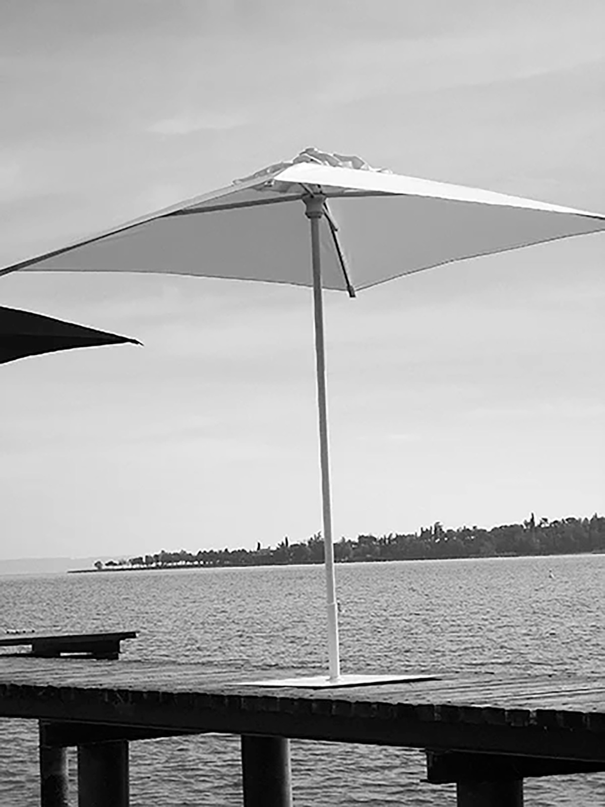 Ocean Alluminio ombrellone a palo centrale 200x200 di Ombrellificio Veneto è un ombrellone a palo centrale in alluminio con telaio in alluminio verniciato grigio antracite oppure bianco – completo soffietto antivento - apertura a sollevamento – corone in resina – su ordinazione anche con pendente – base venduta come accessorio. Il peso della base deve essere proporzionato al peso dell’ombrellone. Se ne consiglia comunque l’uso in condizioni meteorologiche sostanzialmente normali.
