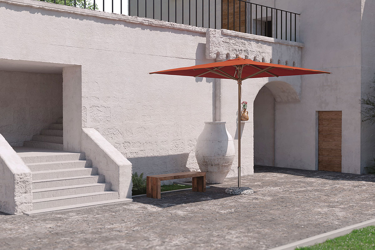Petrarca Legno ombrellone a palo centrale 300x300 di Ombrellificio Veneto è un ombrellone a palo centrale telescopico in legno con telaio in pregiato legno duro verniciato – completo soffietto antivento – apertura a doppia carrucola – sistema a doppio ragno che permette la chiusura sopra il tavolo sottostante –essere proporzionato al peso dell’ombrellone. Se ne consiglia comunque l’uso in condizioni meteorologiche sostanzialmente normali.