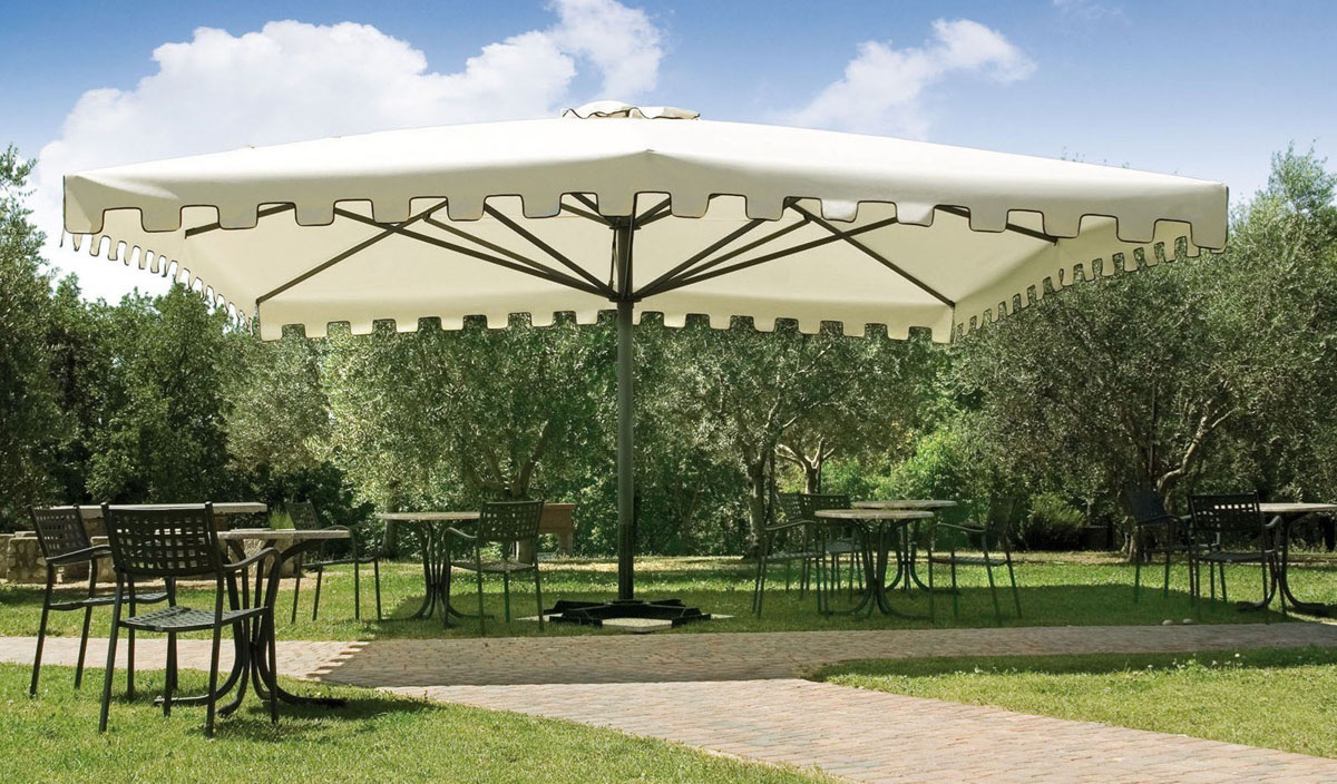 L' Ombrellone Capri Dark 4x4 by Scolaro Ombrelloni Parasol è l'ombrellone da giardino gigante a palo centrale con chiusura telescopica, progettato per coprire grandi superfici ed adatto ad un uso professionale. Articolo di qualità, ma sviluppato con concetti di praticità e funzionalità. Telaio con sistema di apertura telescopico in alluminio, componenti in acciaio verniciato a polveri colore antracite. Camino Antivento