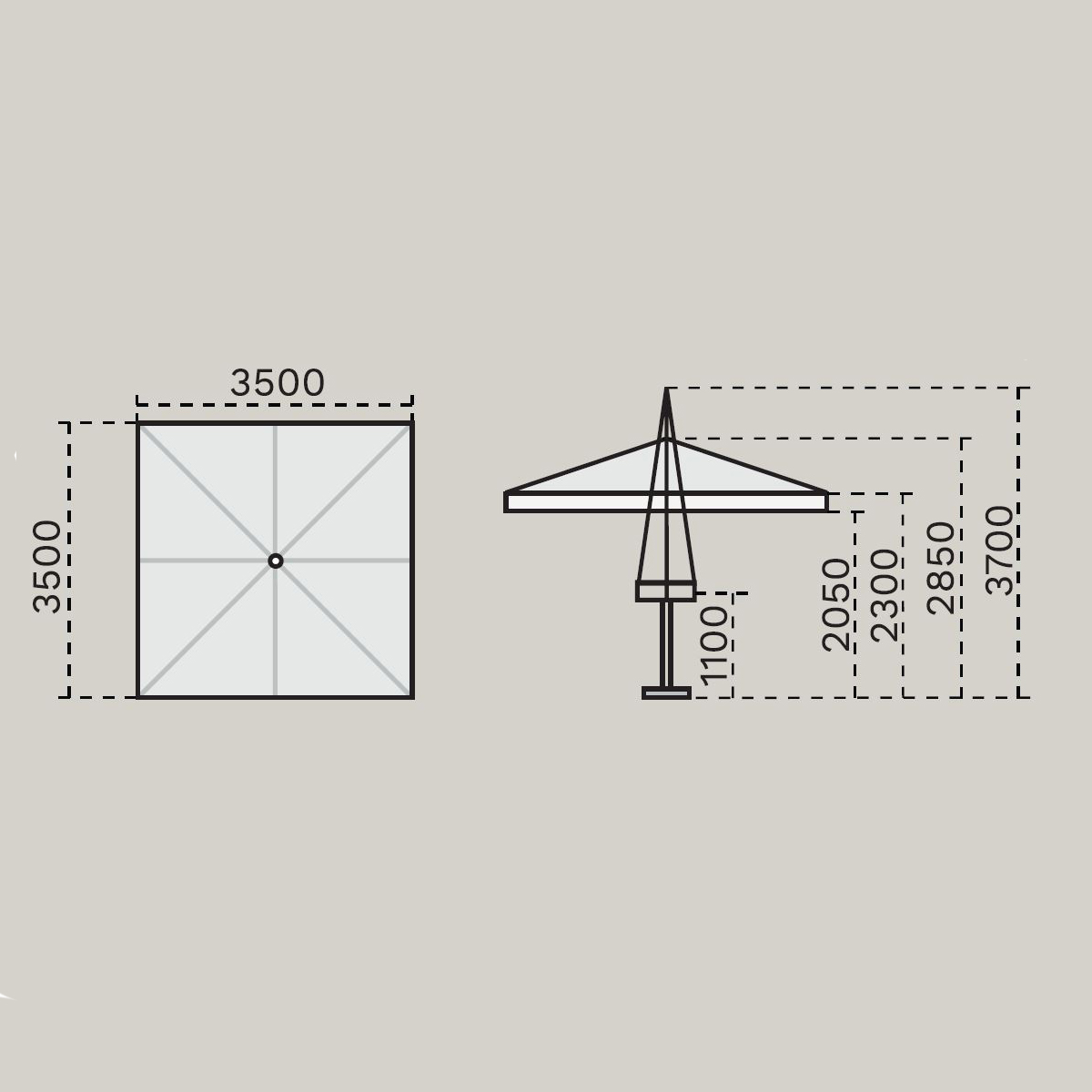 Ombrellone Verona Dark 3,5x3,5 Scolaro Ombrelloni Parasol - Ombrelloni da giardino, esterno, parasole, outdoor