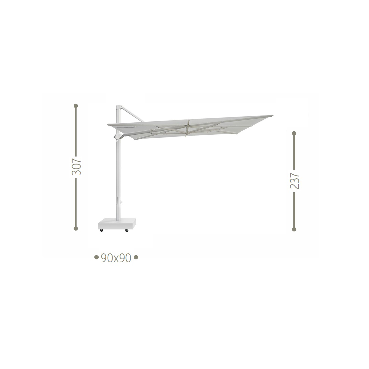 Basamento in acciaio di colore bianco 90x90 cm. Per una stabilità ottimale si consiglia l’utilizzo di n.8 piastre in graniglia 50x50x5cm (pesi non inclusi).