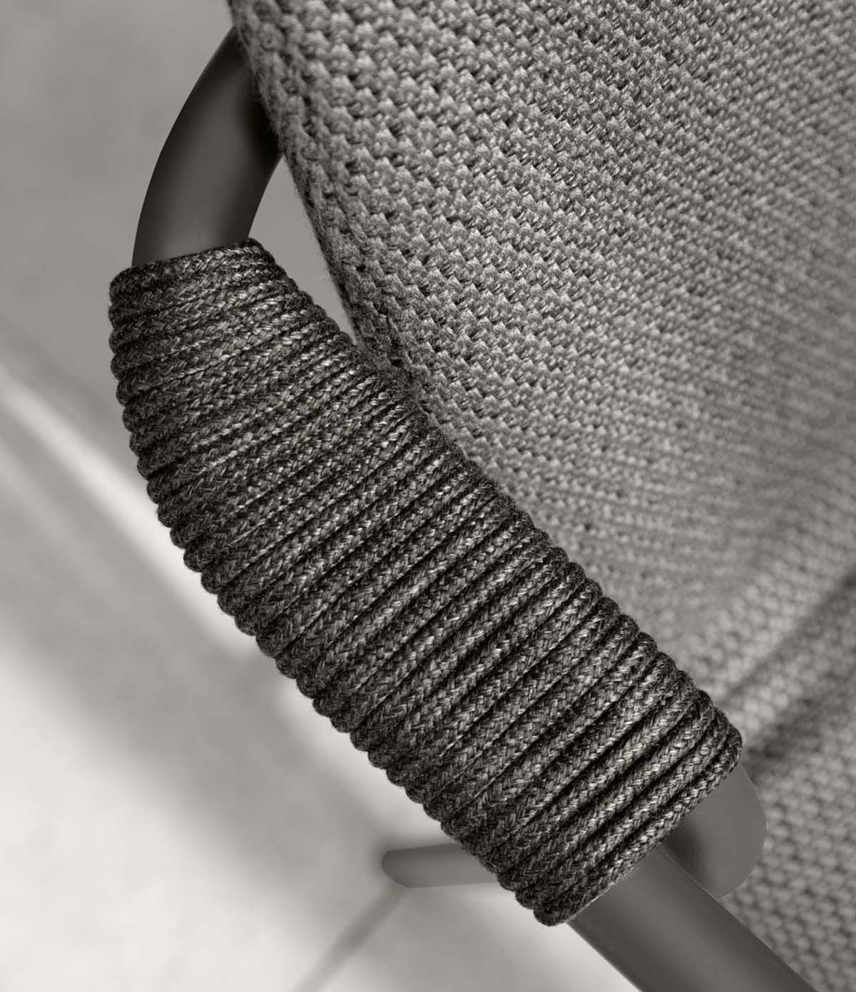Ispirata alla modularità, la collezione Coral è caratterizzata da materiali quali alluminio e corda che impreziosiscono il prodotto e ne garantiscono la qualità nel tempo. Le linee pulite e le composizioni equilibrate della collezione sono arricchite da una serie di complementi che permettono un alto livello di utilizzabilità e confort. Il tema della corda è preponderante e lo si ritrova anche come dettaglio nelle impugnature delle sedute, nel side table o nei pouf.I divani sono caratterizzati da un volume solido sulla seduta, addolcita dai cuscini decorativi, in contrasto con le sedie e le sedute lounge la cui struttura esile e raffinata introduce il tema della leggerezza.