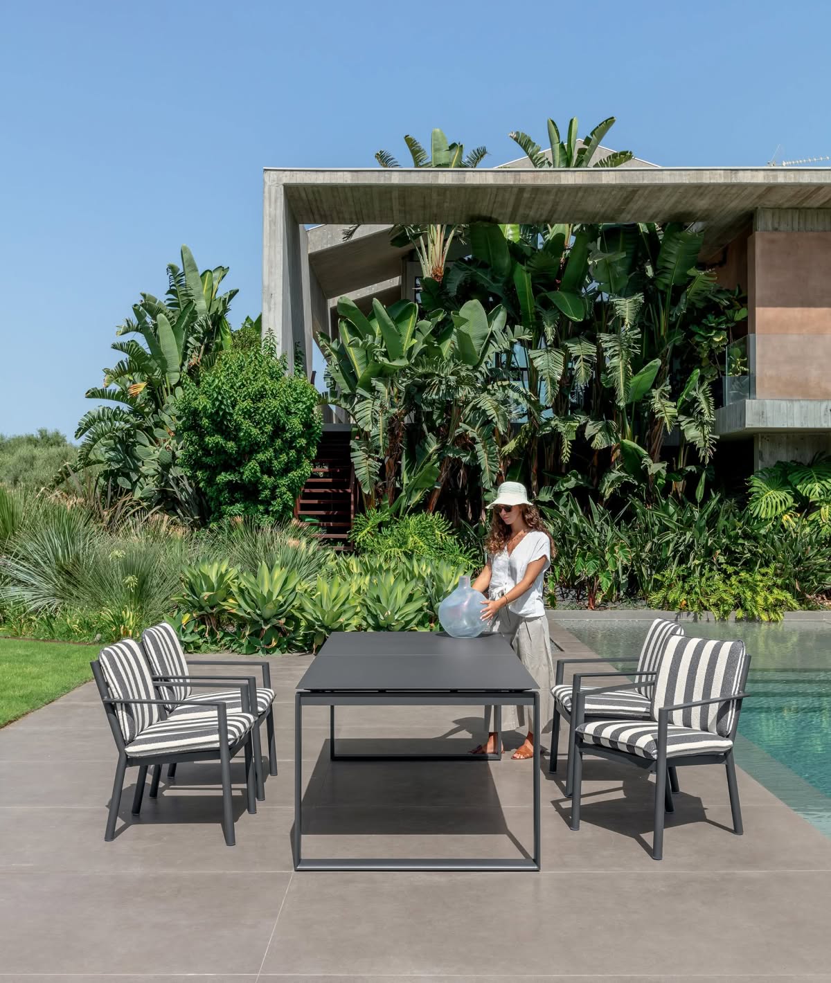 Finn è una collezione outdoor che incarna l’equilibrio tra semplicità formale e precisione tecnica. Realizzata interamente in alluminio, è pensata per ambienti essenziali, architetture pulite e spazi in cui ogni dettaglio è studiato per durare e respirare. Linee nette, volumi asciutti e un tessuto rigato disegnano un profilo elegante ma discreto. Finn non cerca di stupire, ma di integrarsi con naturalezza nel paesaggio, trasformando terrazze, giardini e rooftop in luoghi di calma funzionale. Con Finn, l’outdoor diventa un gesto preciso: silenzioso, deciso, perfettamente in equilibrio tra materia e aria. Praticità, cura dei dettagli e funzionalità: T-Young è un catalogo in cui sono state riunite collezioni in grado di dare risposte concrete e versatili ai desideri di ciascun cliente, in qualsiasi parte del mondo. Ogni collezione è stata disegnata rispettando i canoni estetici dell’essenzialità e della purezza formale, realizzata con materiali che uniscono il comfort alla simbiosi visiva con la natura circostante. Forme decise, materiali performanti e profili minimali, T-Young è un catalogo pensato per completare e rinnovare gli spazi, rispettando la sensibilità estetica di una clientela molto variegata.