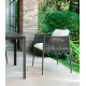 La poltroncina Luce nasce dall’incontro tra l’alluminio della struttura e la corda in poliolefina incordata a mano con cui si rivestono lo schienale ed i braccioli, creando un raffinato connubio di stile ed eleganza per rendere la vita all’aria aperta ancora più piacevole. La poltroncina Luce trova il suo naturale complemento nei cuscini sfoderabili in tessuto acrilico al 100% in color latte. La tonalità luminosa dà un tocco leggero e fresco al grigio carbone melange della struttura in corda, aggiungendo ulteriore comodità all’insieme. Le gambe rastremate, che tendono ad assottigliarsi all’estremità sono la peculiarità della linea, conferendo leggerezza agli arredi senza rinunciare alla stabilità e solidità garantita dall’alluminio. È inoltre possibile acquistare su richiesta una copertura impermeabile verde in tessuto sintetico per custodirlo durante la stagione invernale. Cuscini arredo optional su richiesta.