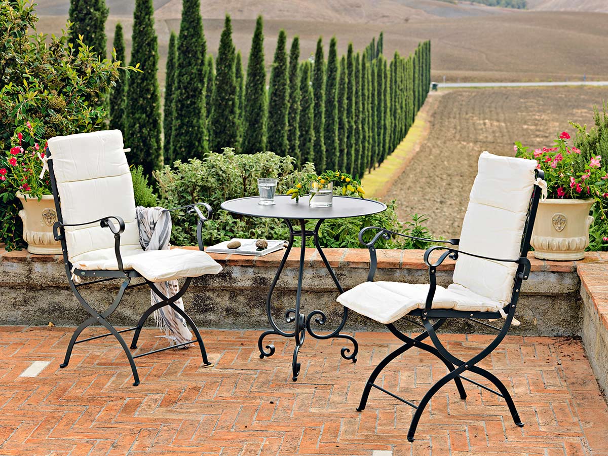 Gli arredi in ferro battuto della collezione Aurora sono trattati con zincatura a caldo.