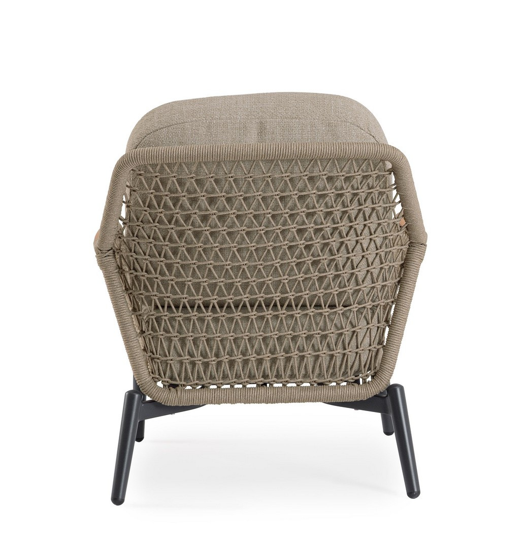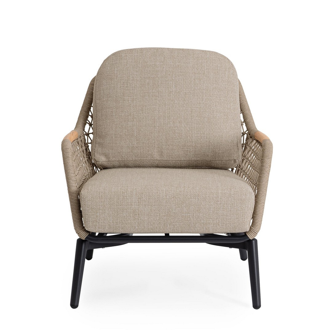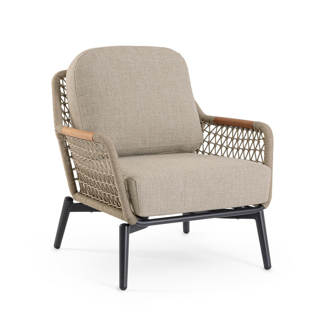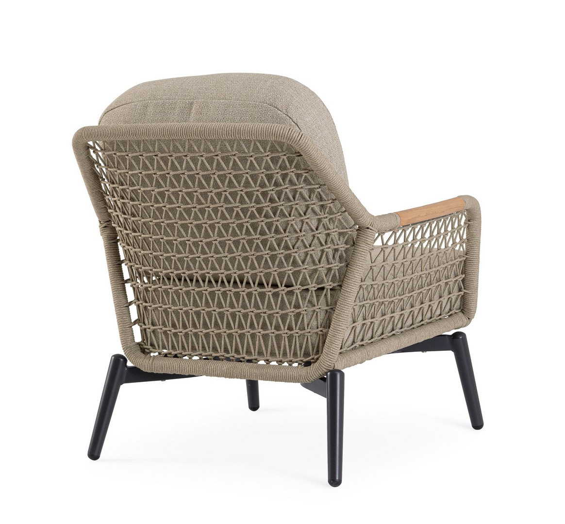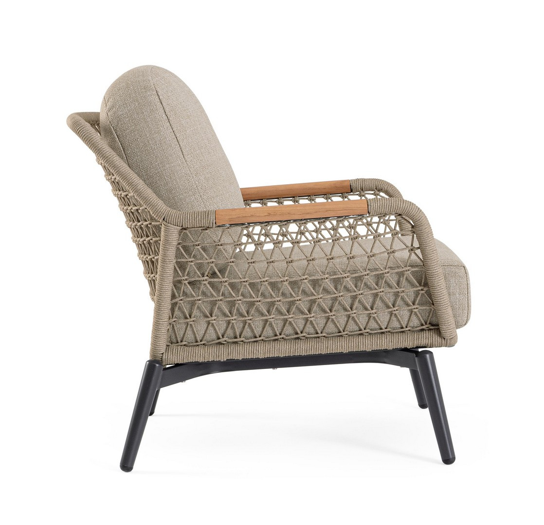 Poltrona Eulero Antracite Bizzotto | Poltrona da giardino design in alluminio, legno di Teak e corda Olefin