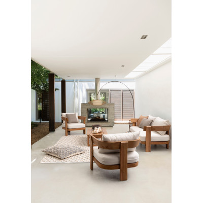 Poltrona Evora di Bizzotto è la poltrona da giardino con struttura in in teak - svlk (legno certificato proveniente da foreste sostenibili), finitura finale a base d'acqua. Cuscini sfoderabili in tessuto idrorepellente sunproof olefin (100%polypropylene). Il teak è un legno ricco di olii. Con il passare del tempo, questi olii, per un processo naturale, risalgono in superficie e possono macchiare eventuali cuscini a diretto contatto con il legno.