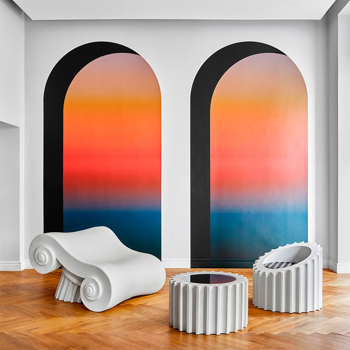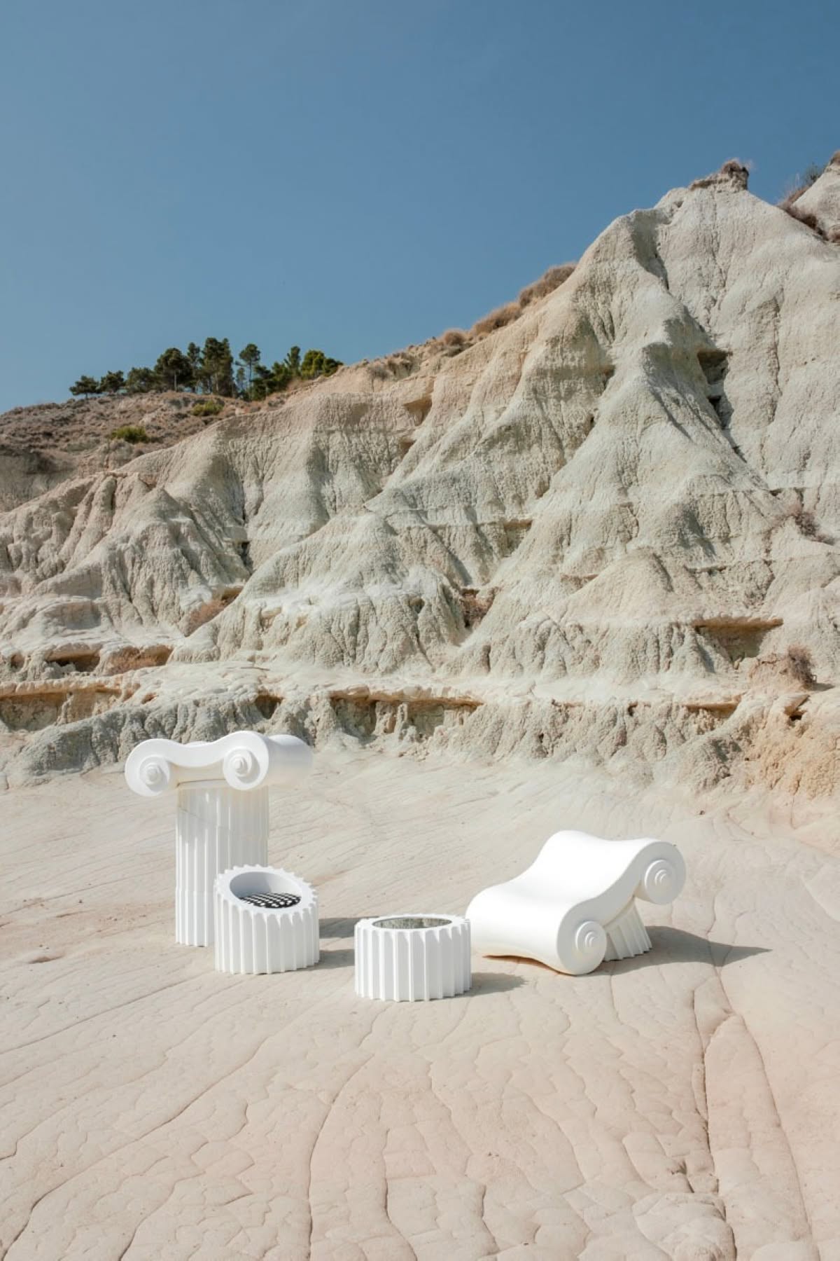 La seduta CAPITELLO, la poltroncina ATTICA e il tavolino ATTICA TL, progettati da Studio 65, nascono dalla “decostruzione” di una tradizionale colonna greca, dando vita a una serie unica che emula le varie parti della stessa. Ciascun pezzo viene artigianalmente realizzato in morbido poliuretano e finito con Guflac® Ultra, consentendo un utilizzo sia per interni sia per esterni, conferendo l’aspetto del marmo dal quale trae ispirazione. La tensione tra aspettative e realtà crea un senso di meraviglia, poiché la morbidezza degli arredi contrasta con la durezza della pietra. Questa iconica serie pop è stata esposta in prestigiosi musei, tra cui il Louvre e il Metropolitan Museum di New York, e rappresenta un interessante esempio di rinascita dalle rovine.