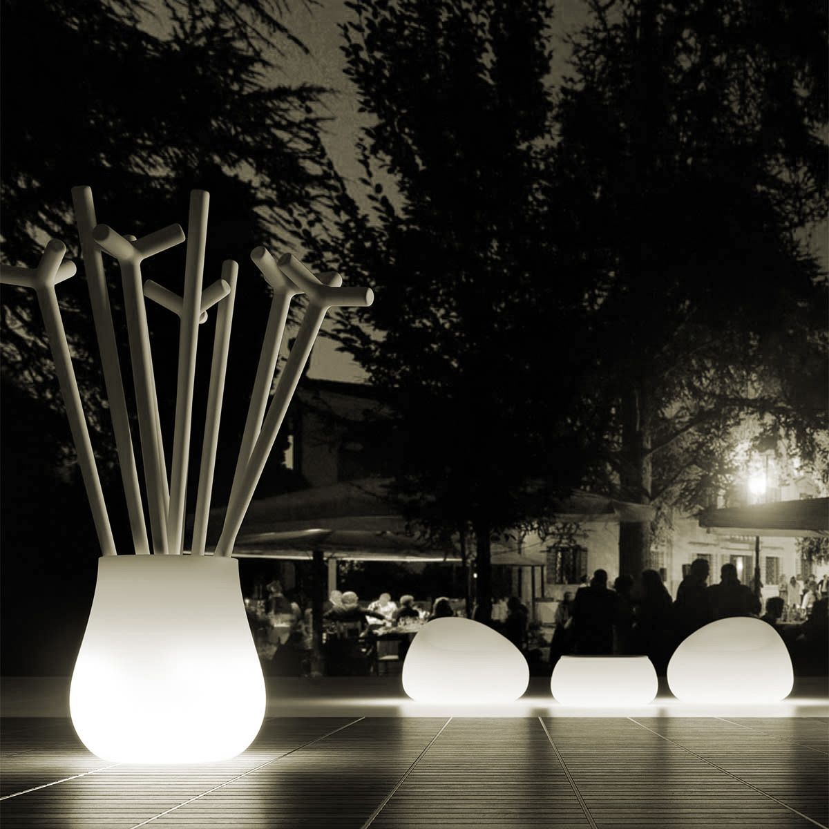 Gumball è la poltrona da giardino luminosa ed informale per spazi esterni. La luce soffusa contribuisce a creare una situazione d’atmosfera accogliente e particolarmente adatta a spazi pubblici e contract. Fornita con kit di illuminazione con attacco E27 valido anche per uso esterno.