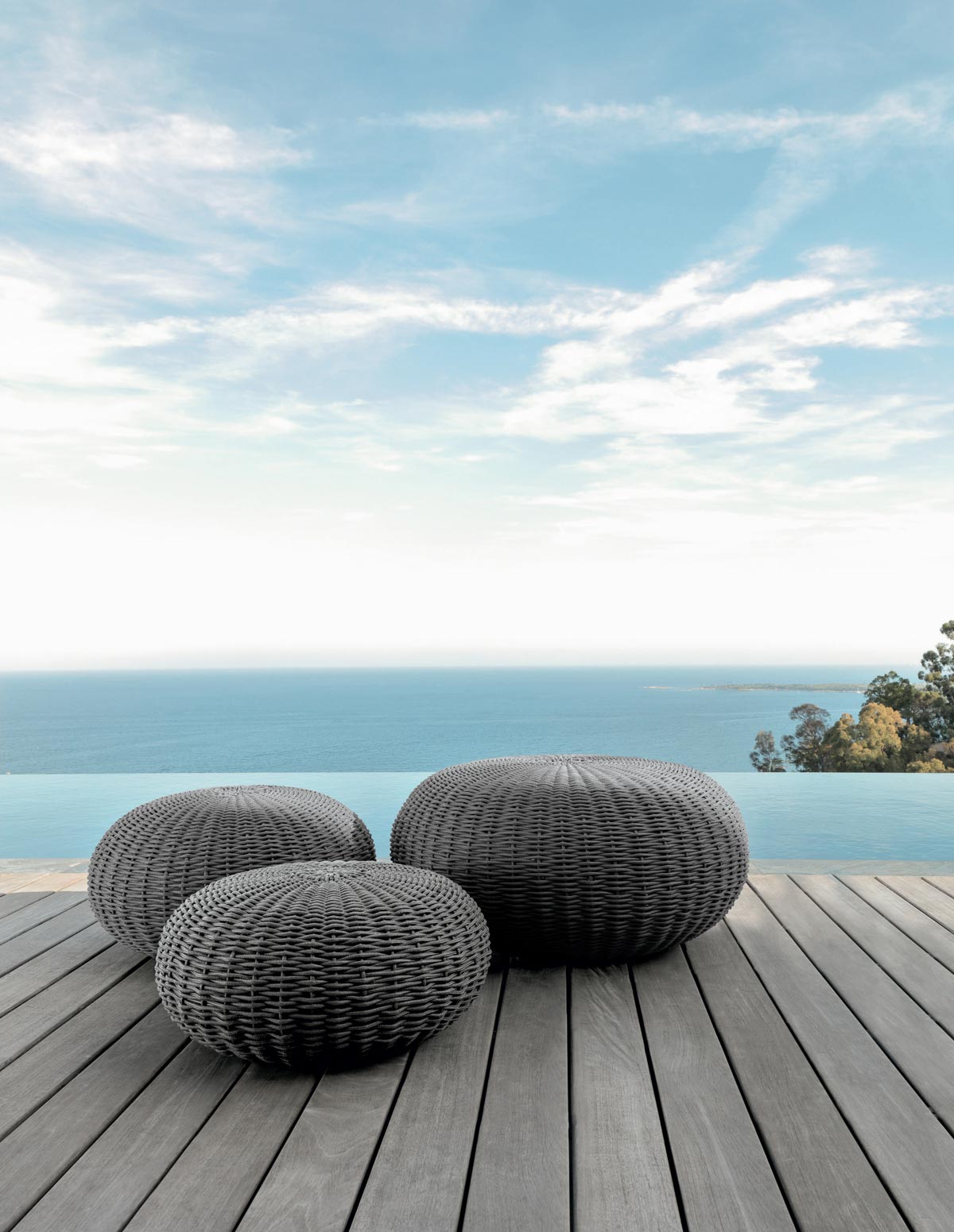 Jackie Pouf è il pouf da giardino caratterizzato da un bellissimo intreccio realizzato a mano di corde sintetiche dalla massima resistenza per un sostegno perfetto all'insegna del comfort. Imbottitura in quick dry foam. Disponibile in 3 misure: small, medium e big e 4 colori: tortora, grigio chiaro, grigio scuro e verde.