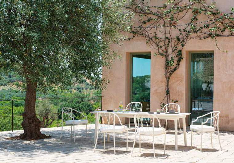 Como è la sedia da esterno ideata dai designers Angeletti e Ruzza, realizzata in tubo e tondino di acciaio, con scocca della seduta lamiera zincata che accoglie con eleganza la morbida cuscineria imbottita. Le saldature di tipo strutturale sono eseguite con tecnologia Mig che conferisce particolare resistenza alla struttura. Le saldature di tipo estetico sono realizzate ad ottone, tecnica che permette una elevata pulizia e linearità delle saldature. Il valore evocativo della memoria ispira la collezione Como, la reinterpretazione di una linea classica in chiave contemporanea, che si inserisce con naturalezza in ogni ambiente. Studio accuratissimo delle proporzioni ed efficacia della funzione sono le parole chiave di questa famiglia di arredi, composta da sedia, poltroncina dining con schienale basso e alto, poltrona e divano. Disponibili come optional sono i comodi e pratici cuscini EMU. Scegli la qualità, scegli il design made in Italy!