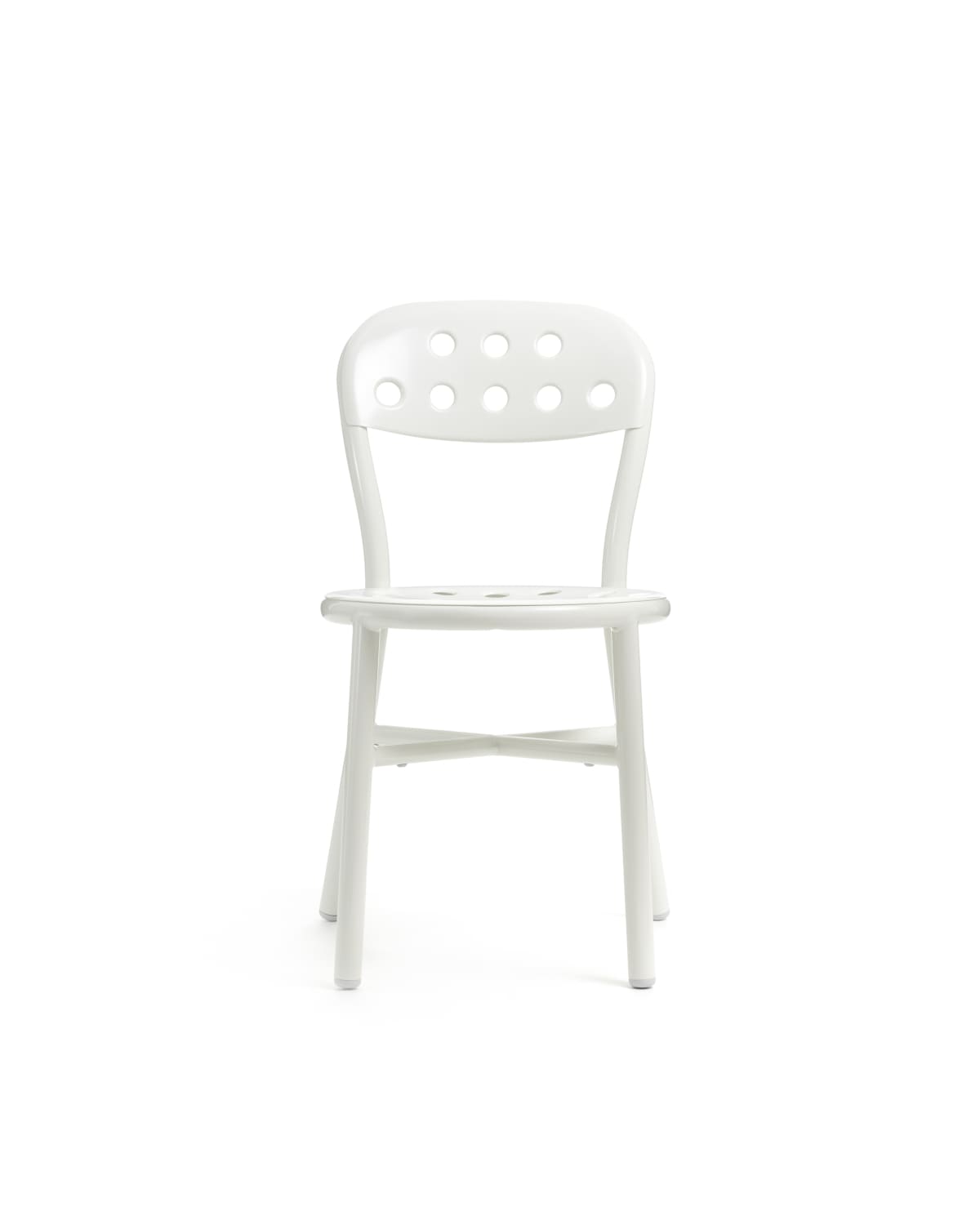 Pipe Sedia impilabile è la sedia di design che combina funzionalità e estetica in un prodotto versatile e durevole. Realizzata con una struttura in tubo di alluminio verniciato a polvere di poliestere, questa sedia non solo garantisce robustezza e durata nel tempo, ma è anche perfettamente adatta per l'uso in ambienti esterni grazie alla sua resistenza agli agenti atmosferici. Il sedile e lo schienale sono realizzati in lamiera di alluminio forata, anch'essa verniciata a polvere di poliestere, conferendo leggerezza e facilità di manutenzione. La possibilità di impilare queste sedie le rende ideali per spazi con esigenze dinamiche di gestione del layout, come uffici, sale conferenze o aree ricreative. Inoltre, la disponibilità di un trolley appositamente progettato da Magis facilita notevolmente il trasporto e lo stoccaggio, rendendo la 'Pipe' una sedia altamente funzionale per ambienti che richiedono flessibilità e praticità nella gestione degli arredi.