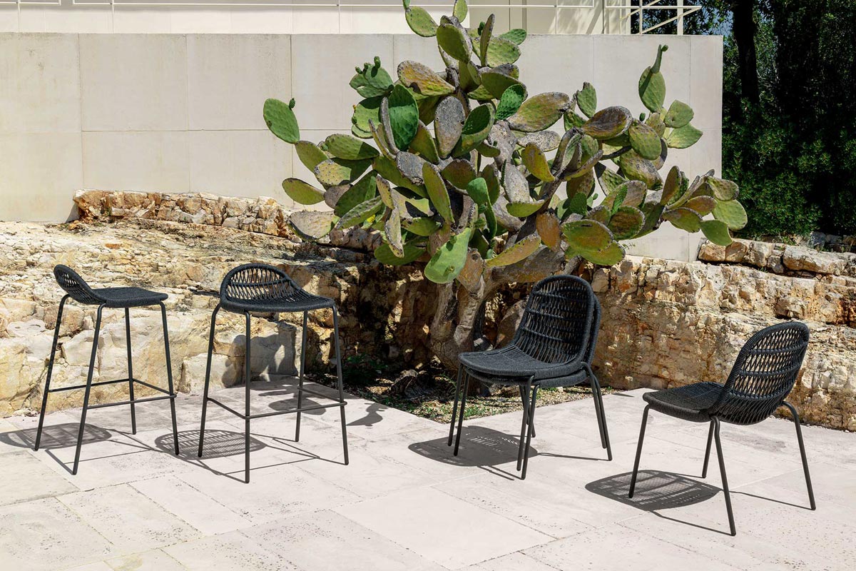 Nata dal desiderio di rievocare l'ondeggiare delle palme mosse dalla brezza marina e la levigatezza delle pietre modellate dall'acqua, la collezione Panama presenta sedie, lounge, sgabelli, lettini, pouf e divanetti dalle ampie forme in cui le linee delle corde intrecciate e attraversate dai raggi del sole danno vita a giochi di luci e ombre.