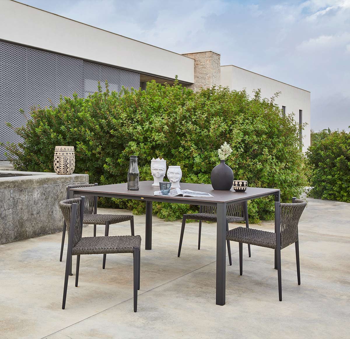 La sedia impilabile Luce nasce dall’incontro tra l’alluminio della struttura e la corda in poliolefina incordata a mano con cui è rivestita, creando un raffinato connubio di stile ed eleganza per rendere la vita all’aria aperta ancora più piacevole. La sedia Luce trova il suo naturale complemento nel cuscino seduta sfoderabili in tessuto acrilico al 100% in color latte disponibile come optional. La tonalità luminosa dà un tocco leggero e fresco al grigio carbone melange della struttura in corda, aggiungendo ulteriore comodità all’insieme. Le gambe rastremate, che tendono ad assottigliarsi all’estremità sono la peculiarità della linea, conferendo leggerezza agli arredi senza rinunciare alla stabilità e solidità garantita dall’alluminio. È inoltre possibile acquistare su richiesta una copertura impermeabile verde in tessuto sintetico per custodirlo durante la stagione invernale.