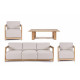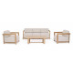 Set Salotto Theseus naturale di Bizzotto è il set da giardino sfoderabile idoneo ad ospitare fino ad un massimo di 5 persone comodamente assortite nel divanetto 3 posti e nelle due poltrone singole, completando la composizione con un tavolino basso. Struttura in alluminio verniciato a polvere (poliestere) effetto legno, cuscini sfoderabili con tessuto spunpoly (100% poliestere) ed imbottitura per esterno fast dry foam. Piedini regolabili. Viteria in acciaio inossidabile. Tavolino da assemblare.
