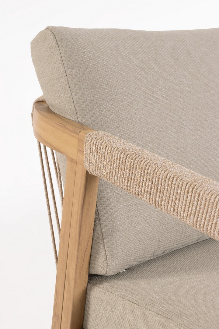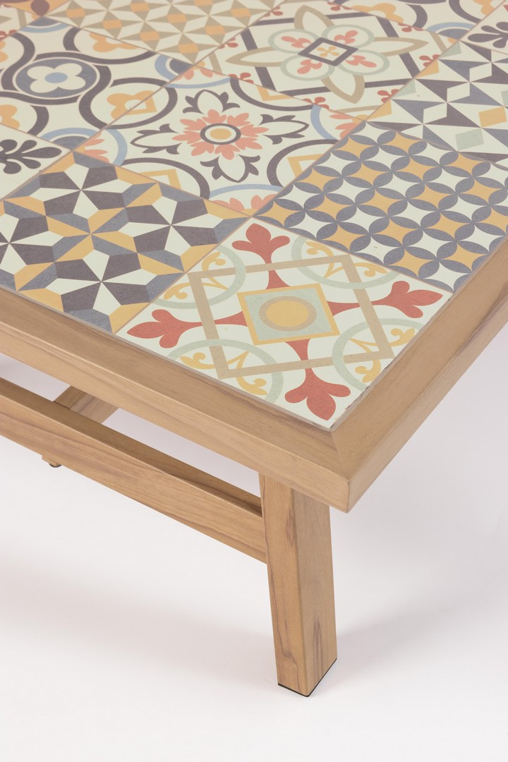 Set4 Salotto Kalimera Desert di Bizzotto è il set da giardino in alluminio verniciato a polvere (poliestere) effetto legno. Piano tavolino con mattonelle in porcellana smaltata (provenienza spagna). Schienale e braccioli con intreccio in corda di poliestere (tonda 5mm). Cuscini seduta e schienale sfoderabili con tessuto idrorepellente olefin (100% polipropilene). Viteria in acciaio inossidabile. Da assemblare.
