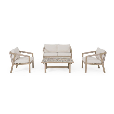 Set4 Salotto Kalimera Desert Bizzotto | Set da giardino design in alluminio effetto legno, porcellana smaltata e tessuto Olefin