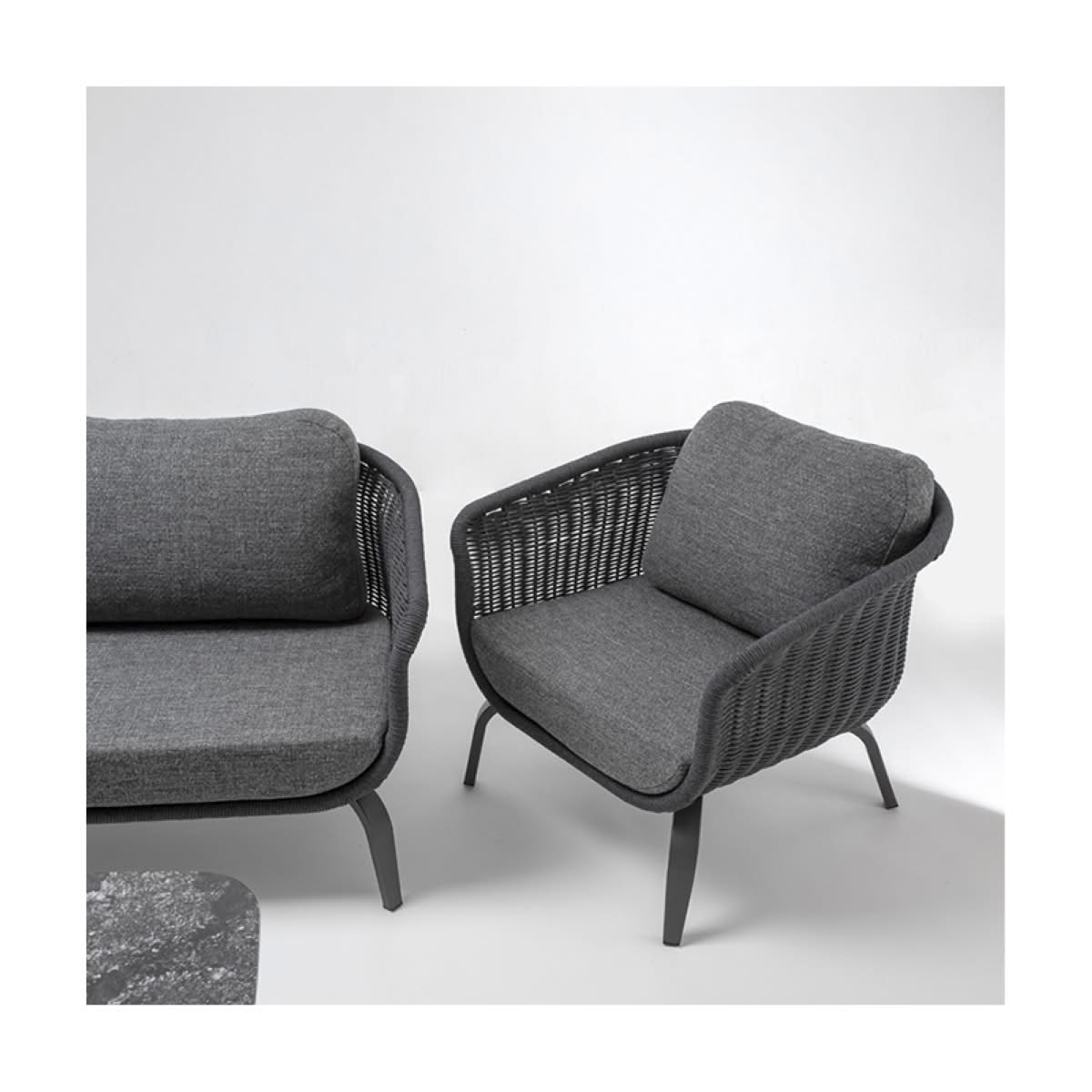 Melrose Rope Set Grattoni | Set da giardino design in lamiera di alluminio e rivestimento con corda textilene