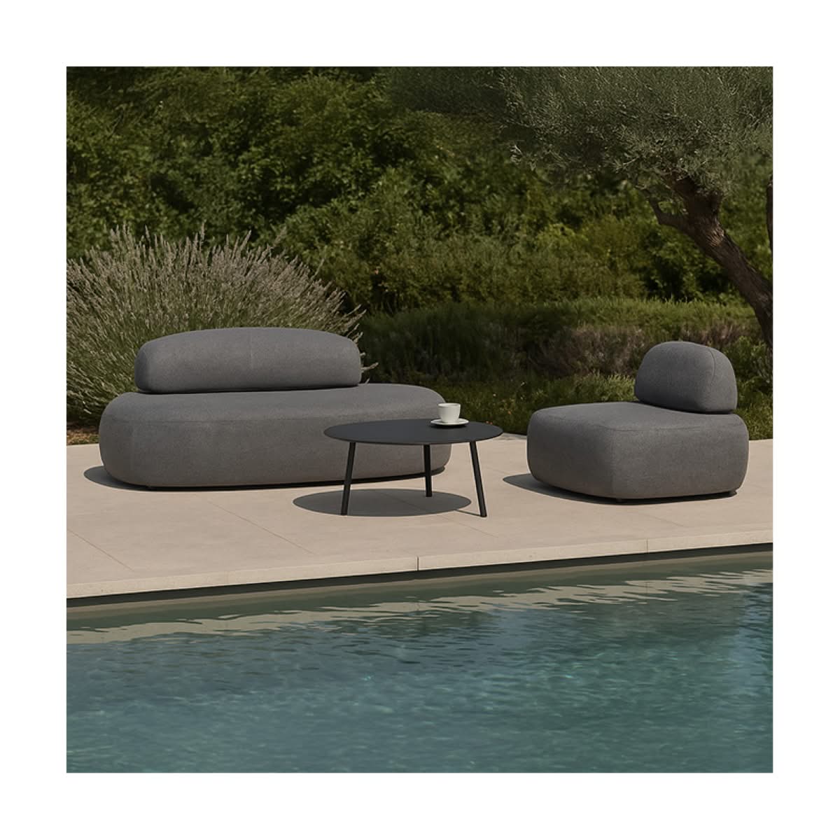 Rock Set Grattoni è il set da giardino di design coordinato composto da un divano ed una poltrona con schienali movibili. Struttura in alluminio con rivestimento in gomma drenante e tessuto acrilico idrorepellente. Tavolino.