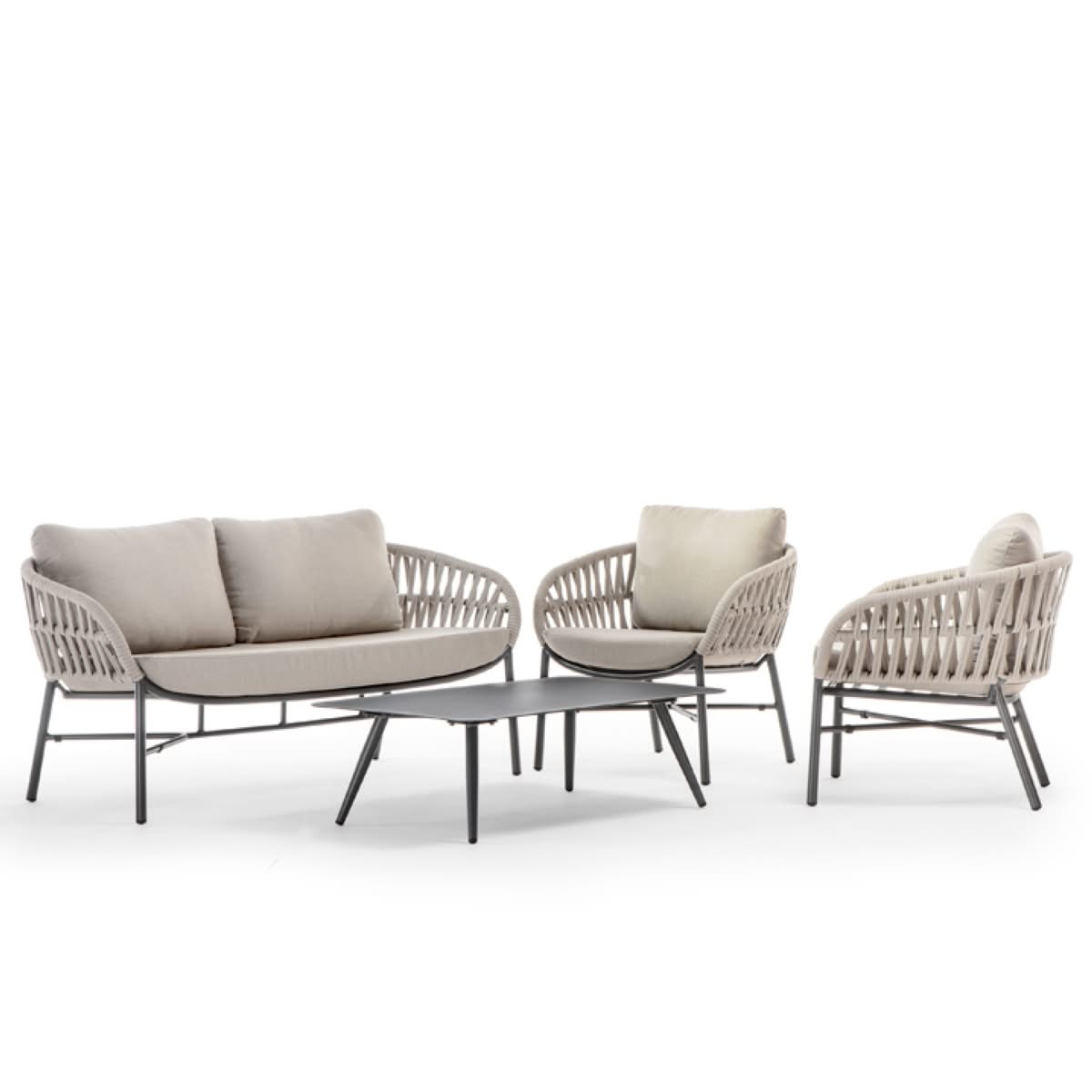 Tahiti Set Grattoni | Set da giardino design in alluminio e rivestimento in corda poliestere Ø 6 mm