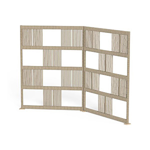 Paraventi caratterizzati da struttura in alluminio verniciata a polvere, rivestita in corda sintetica tono su tono