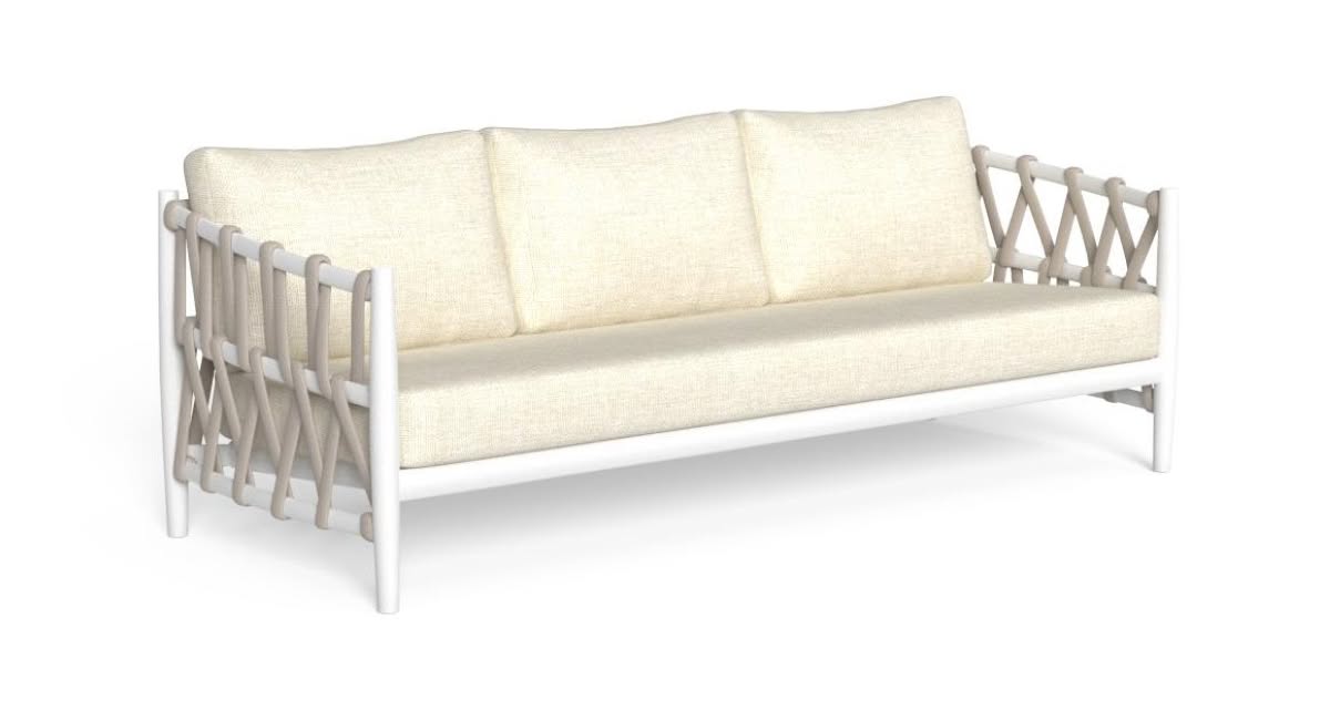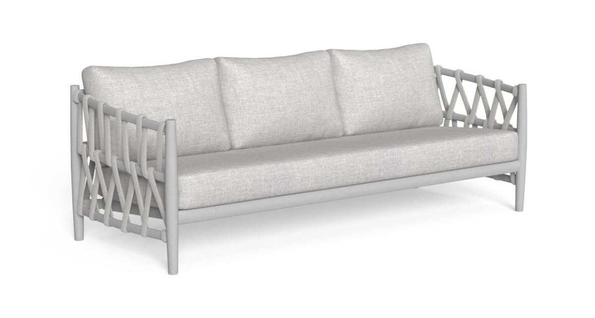 Tess Set da giardino di Talenti è il set da giardino caratterizzato da una struttura in alluminio verniciato in colore bianco (A12), o silver grey (A22) e laterali in corde sintetiche. Cuscini in warm white (C53) o smoke grey (C193). La collezione comprende un divano, due poltrone living e due tavolini. Il Divano Tess è un manifesto di equilibrio tra forza e morbidezza. L’intreccio grafico della struttura in alluminio diventa elemento decorativo e portante, mentre i cuscini imbottiti ne addolciscono il rigore con un comfort naturale. Perfetto per creare zone lounge contemporanee dove design e accoglienza convivono in armonia. La Poltrona Living Teso unisce architettura e comfort in una forma scultorea ma accogliente. L’intreccio in alluminio verniciato abbraccia la seduta, disegnando una geometria dinamica e riconoscibile. Un elemento d’arredo dal carattere deciso ma equilibrato, capace di valorizzare ogni ambiente outdoor con personalità e stile. La struttura cilindrica del tavolo caffè D60 e D80 in alluminio sostiene un piano tondo dalle proporzioni bilanciate, in perfetta sintonia con l’estetica della linea. Rappresenta il complemento ideale per comporre spazi outdoor coordinati e versatili, dove ogni dettaglio esprime equilibrio e armonia.