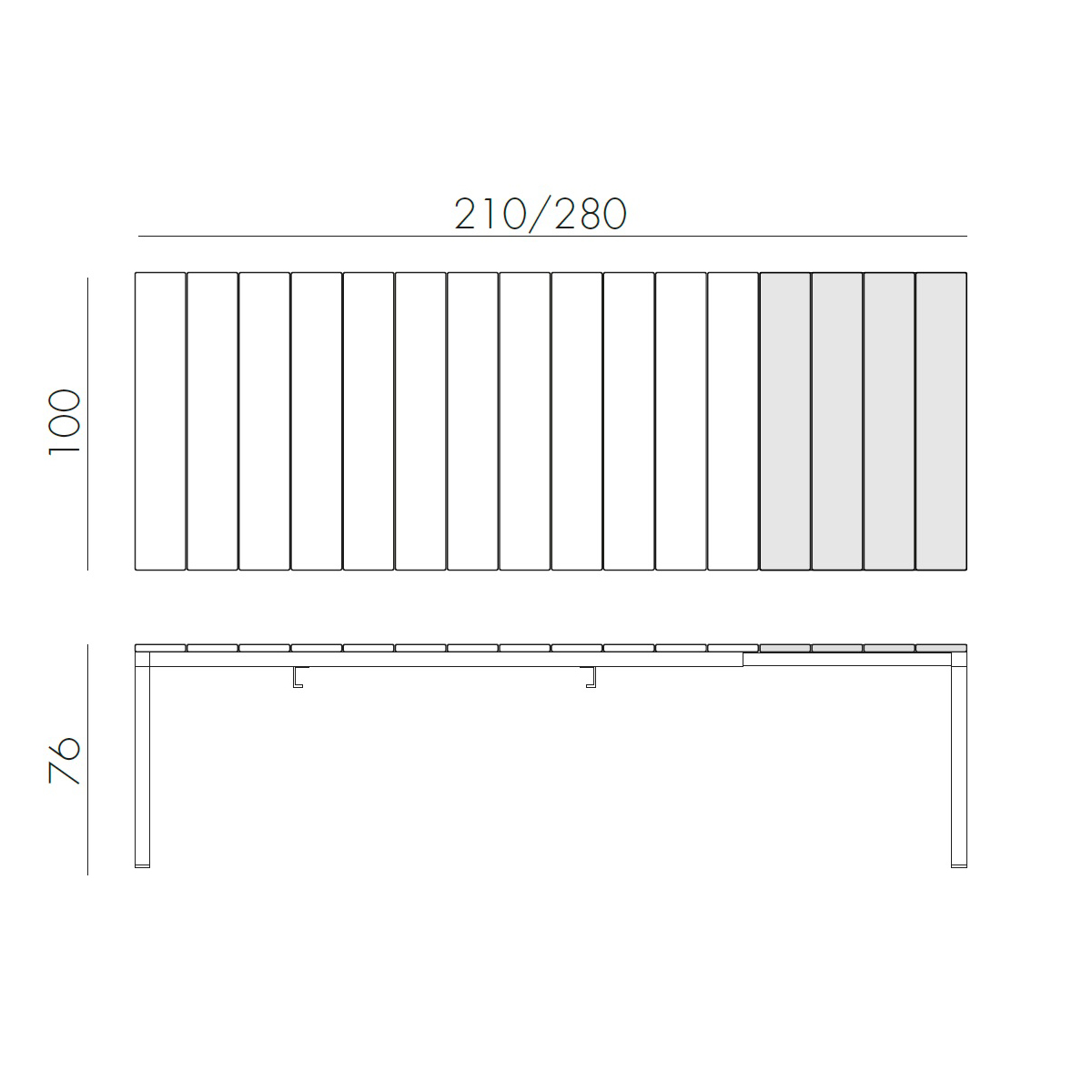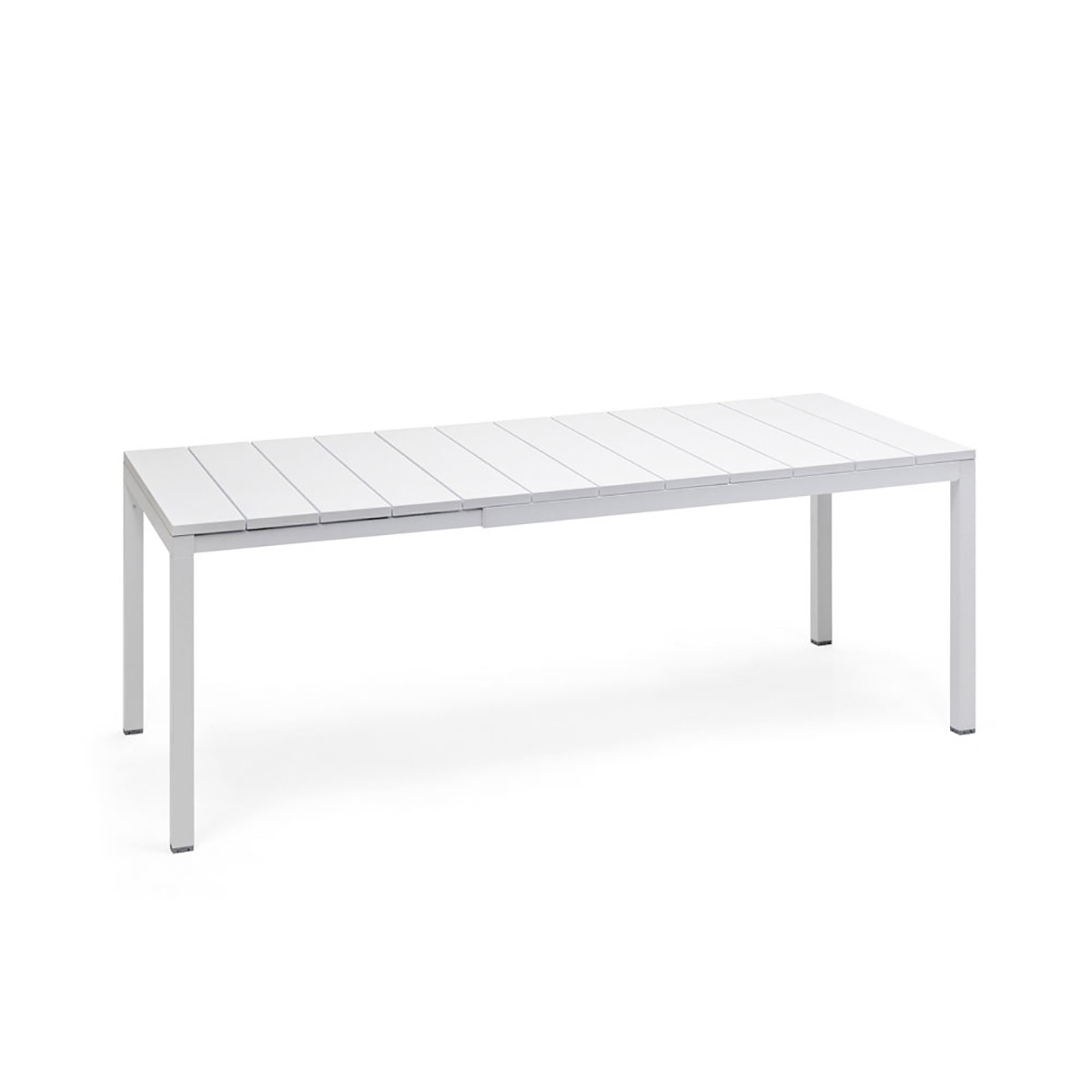 Il tavolo Rio 210 Extensible è realizzato in polipropilene trattato anti-UV e colorato in massa, gambe in alluminio verniciato con piedini regolabili e piano in DurelTOP en pendant cromatico con la struttura. Nuovo sistema di stipaggio delle allunghe al di sotto del piano per il massimo della praticità di utilizzo.