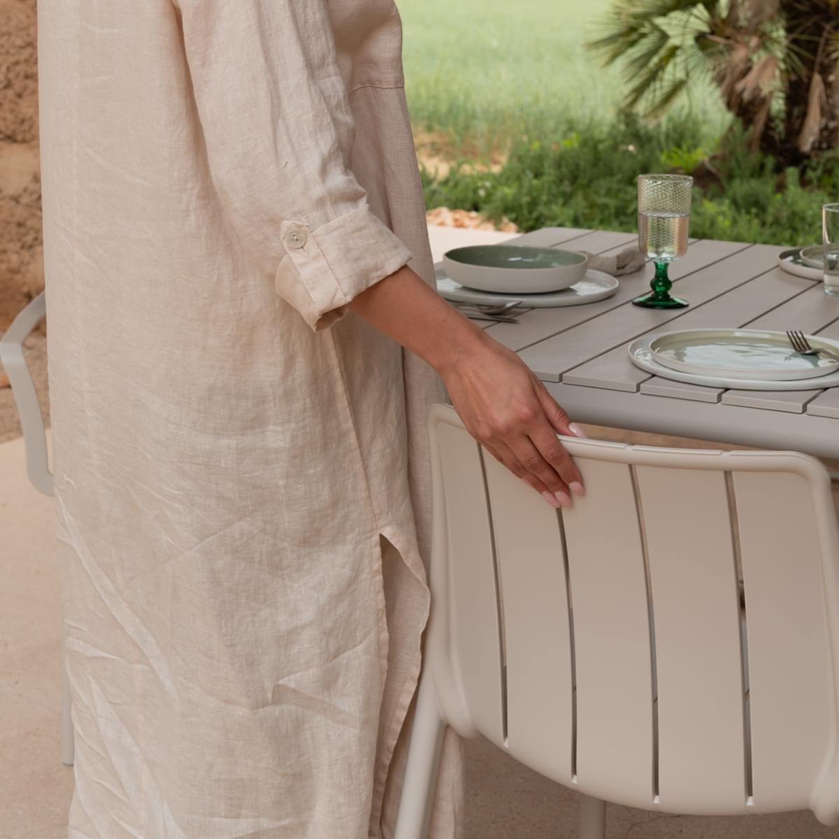 Il Set tavolo Tevere 210 con 6 Tiberina Armchair è un set da giardino firmato Nardi composto da un tavolo Tevere 210 allungabile a 280 cm e da 6 Tiberina Armchair. Il tavolo Tevere 210 Extensible, in grado di ospitare fino a 8/10 persone è disponibile in quattro elegantissime colorazioni : tortora, terra, corda e antracite mentre la poltroncina dogata impilabile Tiberina ha un'anima green e linee arrotondate rese ancor più accattivanti dagli eleganti colori terra, corda, tortora e antracite. Il tavolo Tevere 210 Extensible è realizzato con piano in polipropilene trattato anti-UV e colorato in massa e struttura in alluminio verniciato. Finitura opaca. Resina riciclabile. Dotato di piedini regolabili.