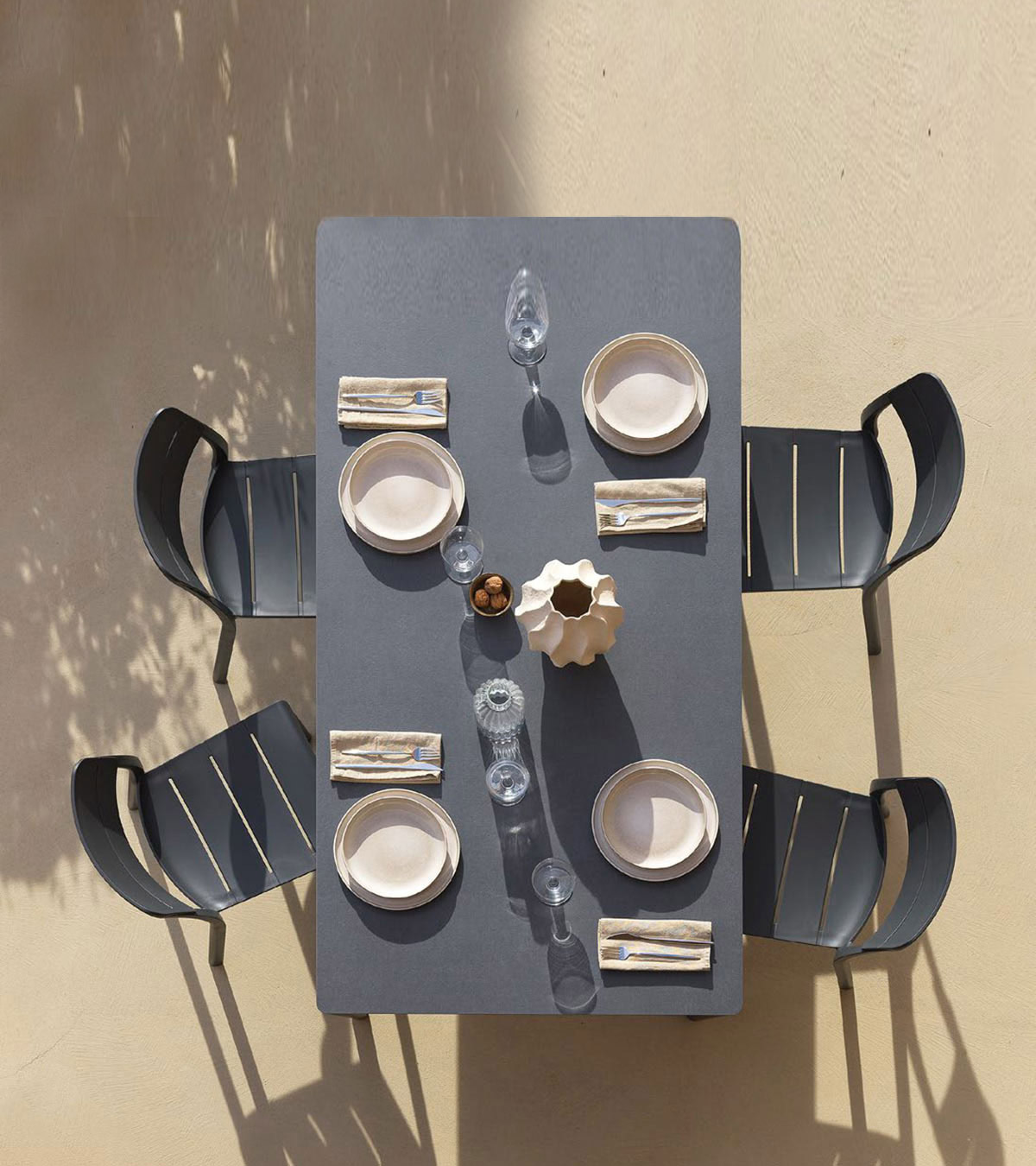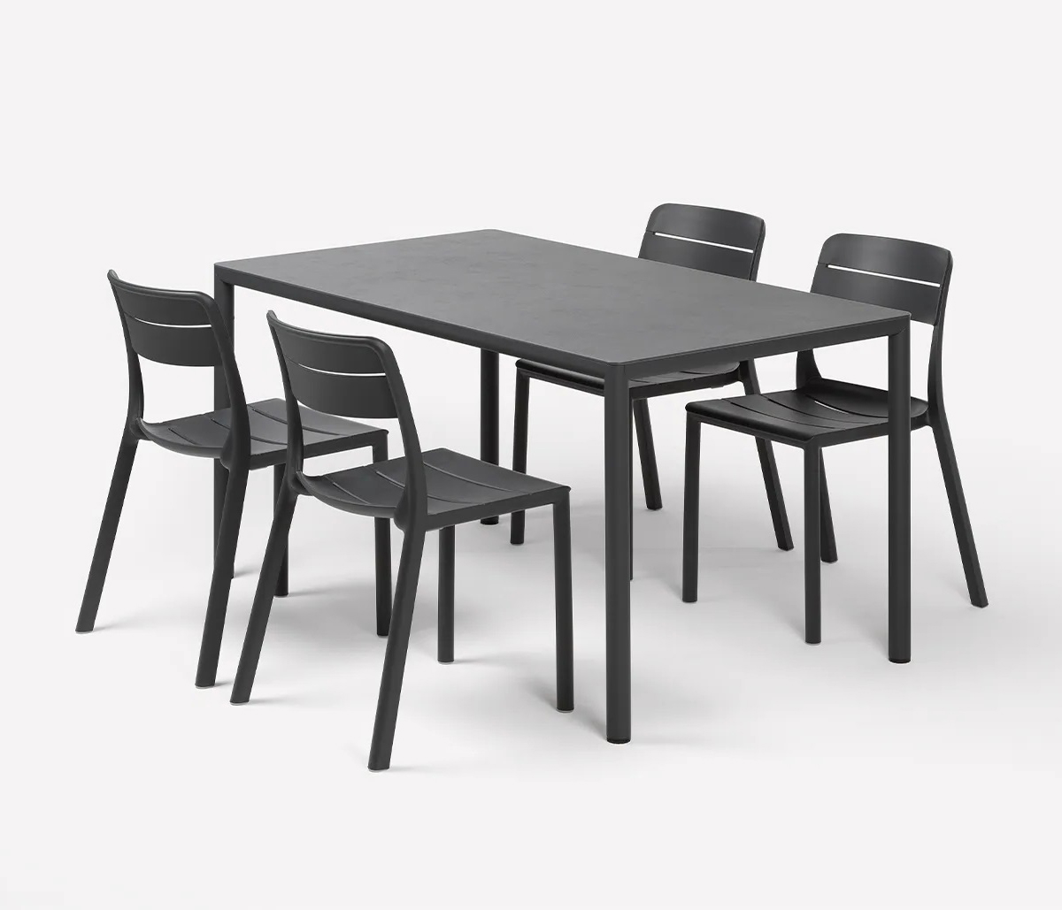 Il Set tavolo Piave 160x90 con 6 sedie Cassia bistrot è il nuovo Set da pranzo outdoor firmato Nardi dal design essenziale e contemporaneo, ideale per essere inserito in qualunque ambiente esterno: dal terrazzo di casa alle terrazze di hotel e bistrot per momenti conviviali o spazi di lavoro all’aperto. Il tavolo rettangolare Piave unisce leggerezza visiva, equilibrio formale e funzionalità: piano in laminato materico HPL ultra sottile, angoli arrotondati e solida struttura in alluminio a sezione tonda. La sedia Cassia bistrot in polipropilene fiberglass è caratterizzata da linee essenziali e contemporanee risultando la sintesi perfetta tra praticità e design, con un comfort ottimale grazie alla curvatura ergonomica dello schienale e della seduta.