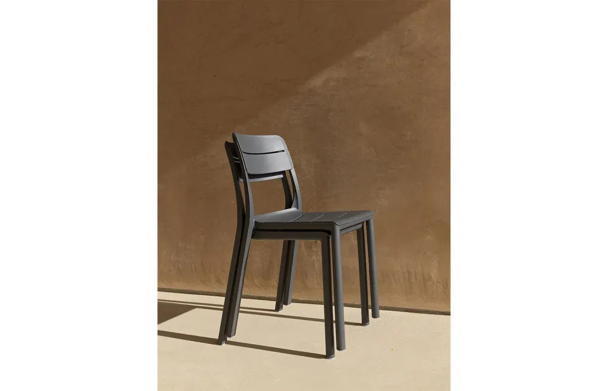 Nelle versioni colore Basalto e Cactus la sedia è in polipropilene fiberglass RIGENERATO.