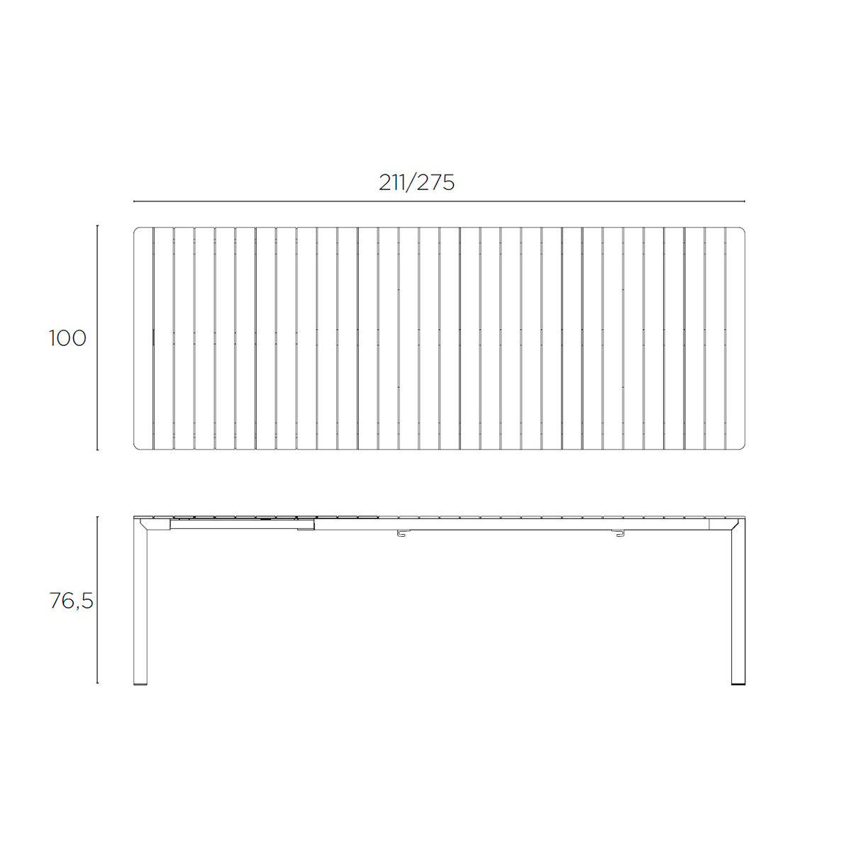 TAVOLO TEVERE 210 EXTENSIBLE: piano in resine di polipropilene fiberglass rigenerato colorato in modo uniforme*.