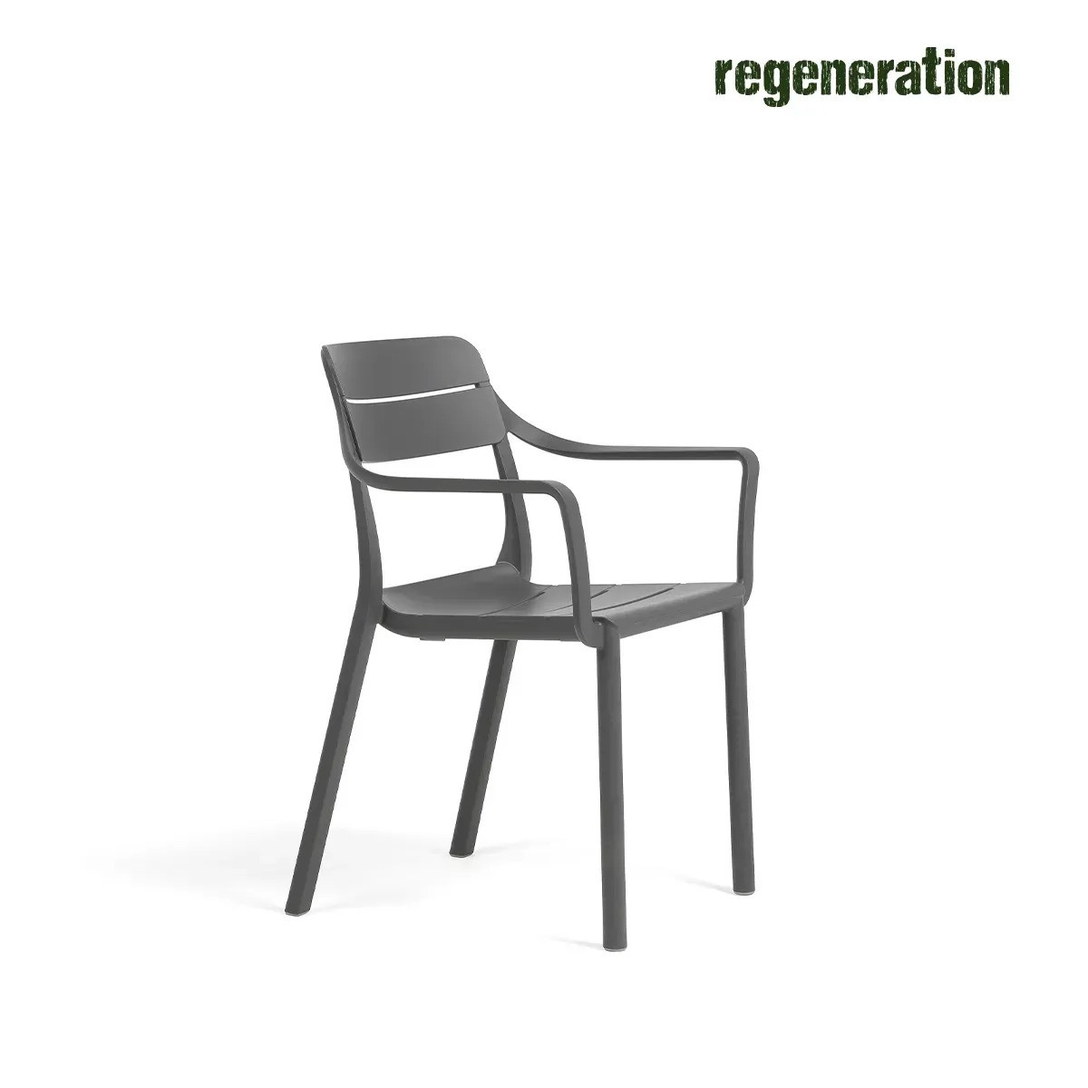 Nelle versioni colore Basalto e Cactus la sedia è in polipropilene fiberglass RIGENERATO.