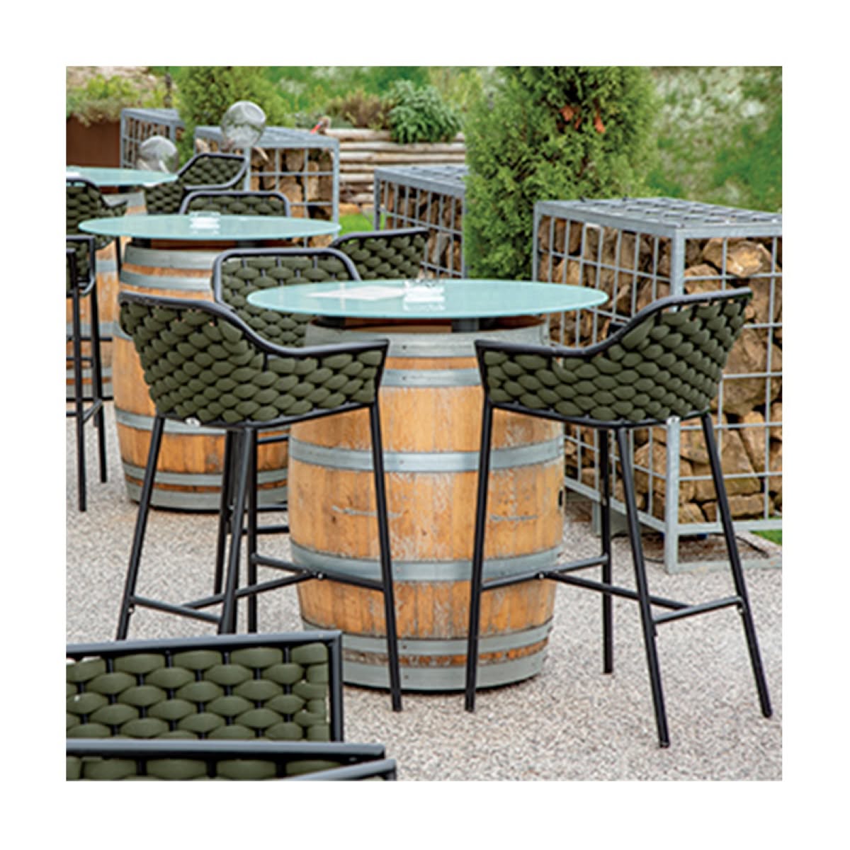 Panama Stool Grattoni è lo sgabello da giardino di design in alluminio con rivestimento in textilene e gomma. Cuscineria sfoderabile.