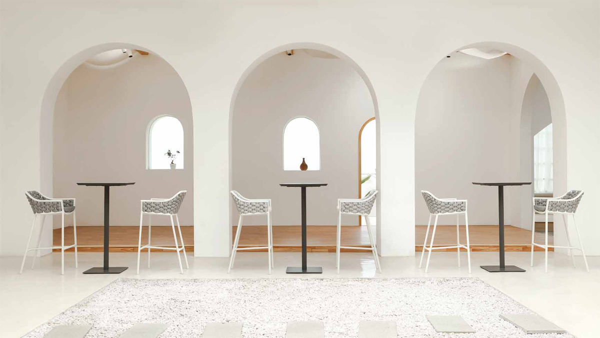 Panama Stool Grattoni | Sgabello design in alluminio con rivestimento in textilene e gomma