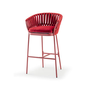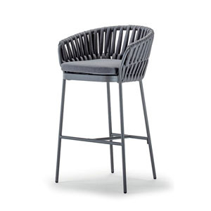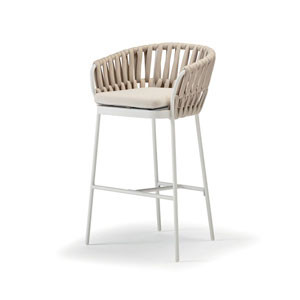 Soho Stool Grattoni è lo sgabello da giardino di design in alluminio verniciato con rivestimento in corda acrilica. Cuscino sfoderabile, tessuto Olefin.
